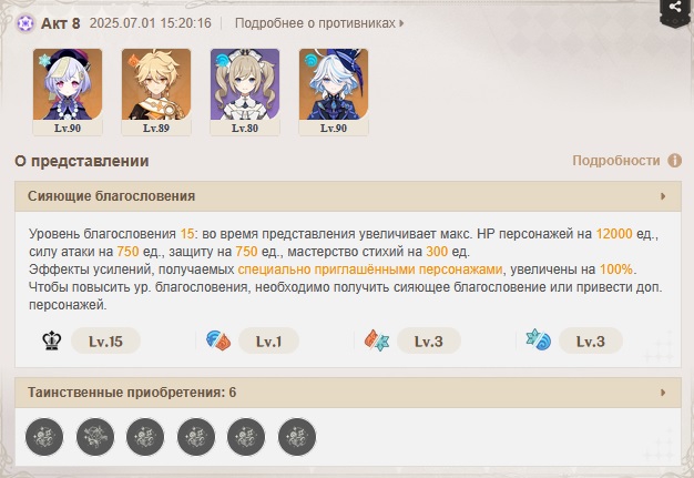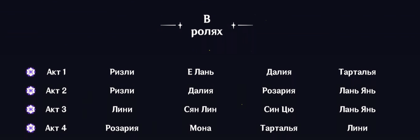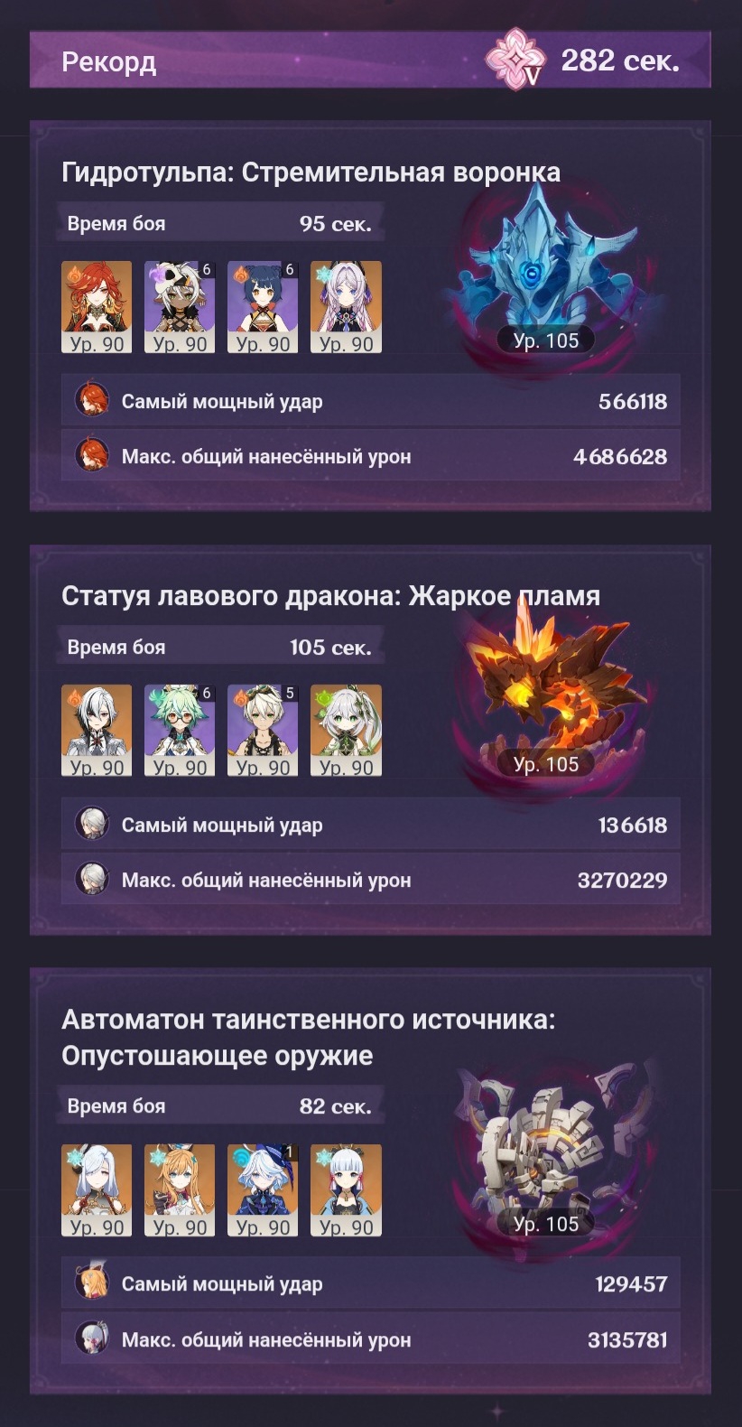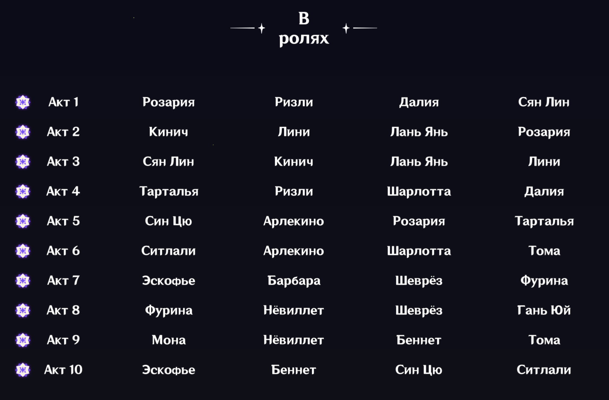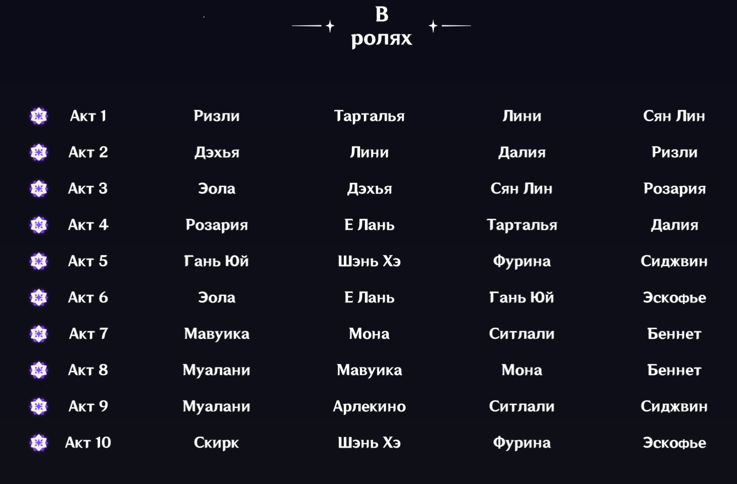 На самом деле, ещё вчера понял, что дело пахнет керосином и давка как раз таки будет в начале, на финал-то предсказуемые Фурины с Скирками, а вот в начале. Например, скрипя зубами пришлось брать Фурину на танцоров, потому что буквально за файт до них закончились Сянка с Беннетом, а больше пиро и нет, Лини - это много смех, но мало пиро и дамага тоже мало, так что нафиг его. Вникать в эти пневмы ну это прям капец, слишком душно и единственное, что помню, так это что Фурина сносит щит с обычной атаки и все, такое. Ещё немного сгорел с Пиджака, взял в 7 акт на роботов и это так себе, К Батьку особых претензий нет, просто как все пиро сильно требует Беннета и много гидро или крио, Бабулю там или Елань, а в тиме были Мона, мисс Лань и Лайла, не самая плохая бригада, но весь прокаст висит буквально пару сек, жесть.