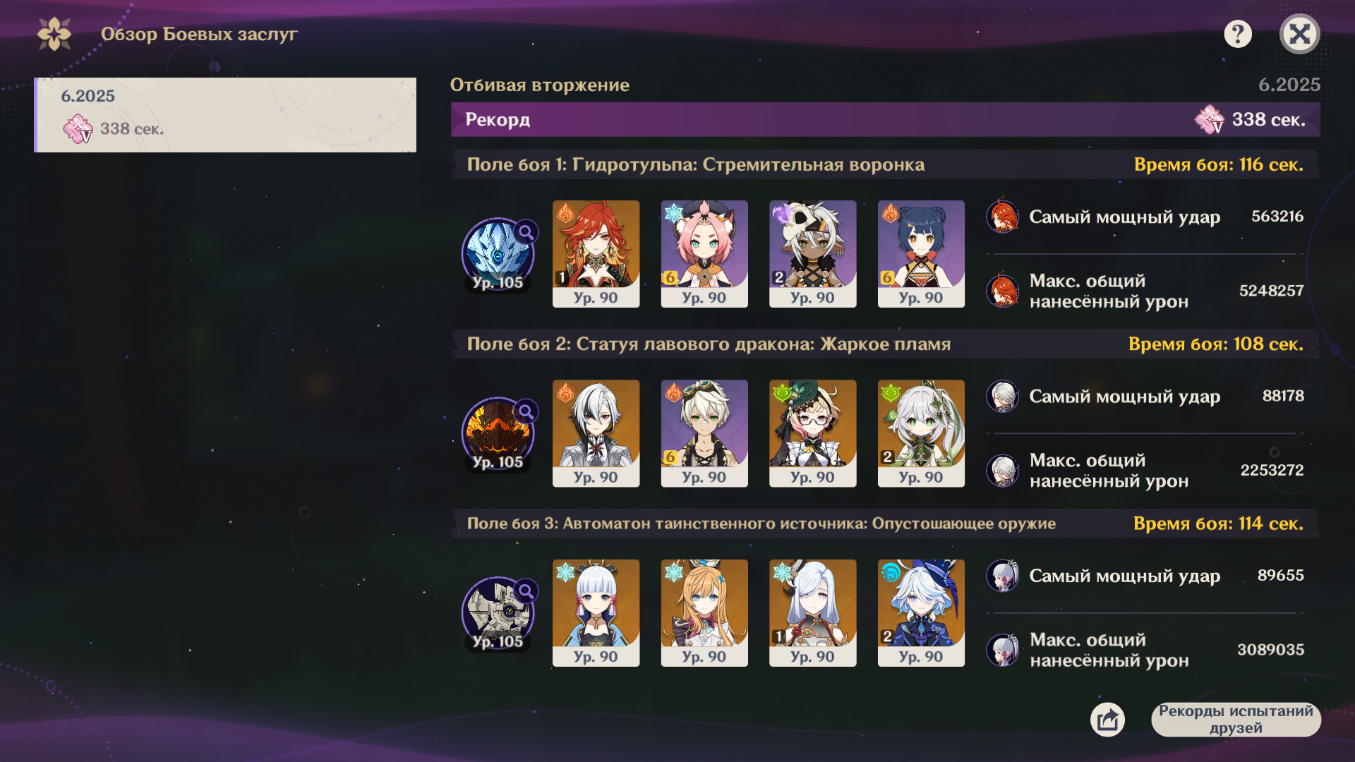 А у меня так прошло. По классике постарался избавиться от тестовых персов на первых этапах, но что-то они совсем грустные, на первом достал ленку. На втором так уж и быть жопич что-то постукал, но при помощи розы и порезки резистов от лань янь. Капелию развалили сянка с синим, монолит заморозили мона с розой. Ну а дальше пошли мои метовые пятерки и все пошло как по маслу.