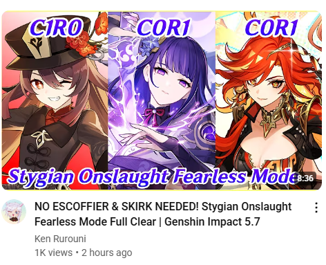Вообще, Фонтейн был люто казуальным, все таки, дали имбу в виде Невыча и Фурины, которые рвут все и вся, потом выкатили контру в виде гео щитов и тут же дали солюшн в виде перегруза, причем это не какая-то накрученная пачка, а старая добрая националка. Капец. В Натлане вот удачи побить столбового босса без Шилонен и Мопеда, остается только гео лоли, как её там, но это минус дамаг и минус слот. Или вот робот, который любит охлаждать трахание, если нет Эскофье и Скирк, то это грустно, Лобяка без конст тут обломает зубы.