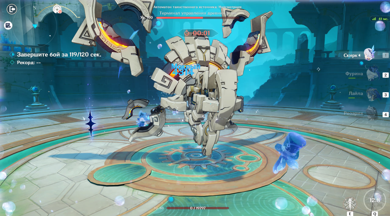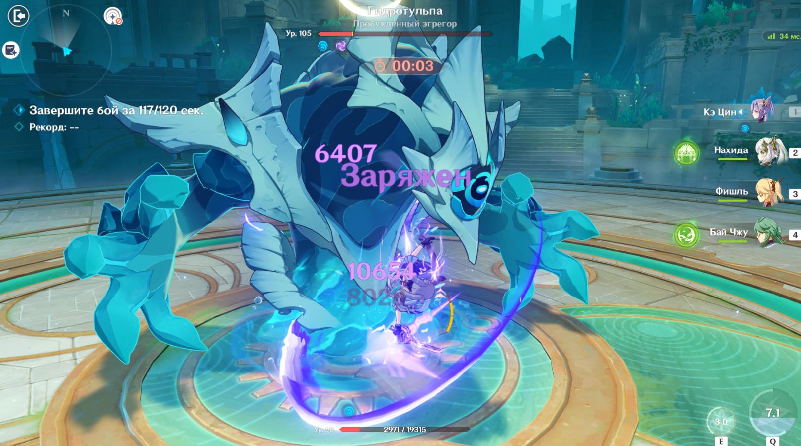 Босс Cocijo Он теряет заряд (charge) довольно быстро, но, скорее всего, командам без Mualani придется пробивать его щит один раз. Щит, при получении удара, наносит ответный урон (counter damage) в ближней зоне. Персонажи на дальней дистанции не получают этот ответный урон. Ответный урон, по всей видимости, наносит около 25% HP за один контрудар для среднестатистического по HP персонажа (не Furina / Neuvilette). Это должно быть отхиливаемо, при условии, что вы можете уворачиваться от атак Cocijo. После разрушения щита Cocijo остается на земле и не может накапливать заряд в течение 10 секунд. По истечении этого времени он поднимается и снова может накапливать заряд. Если у Cocijo полный заряд, но он находится в середине анимации атаки, он не сможет поставить щит до завершения этой анимации. Cocijo можно заморозить (freezable). Команды Skirk показали неожиданно хорошие результаты в удержании его без щита, даже когда он достигал полного заряда.