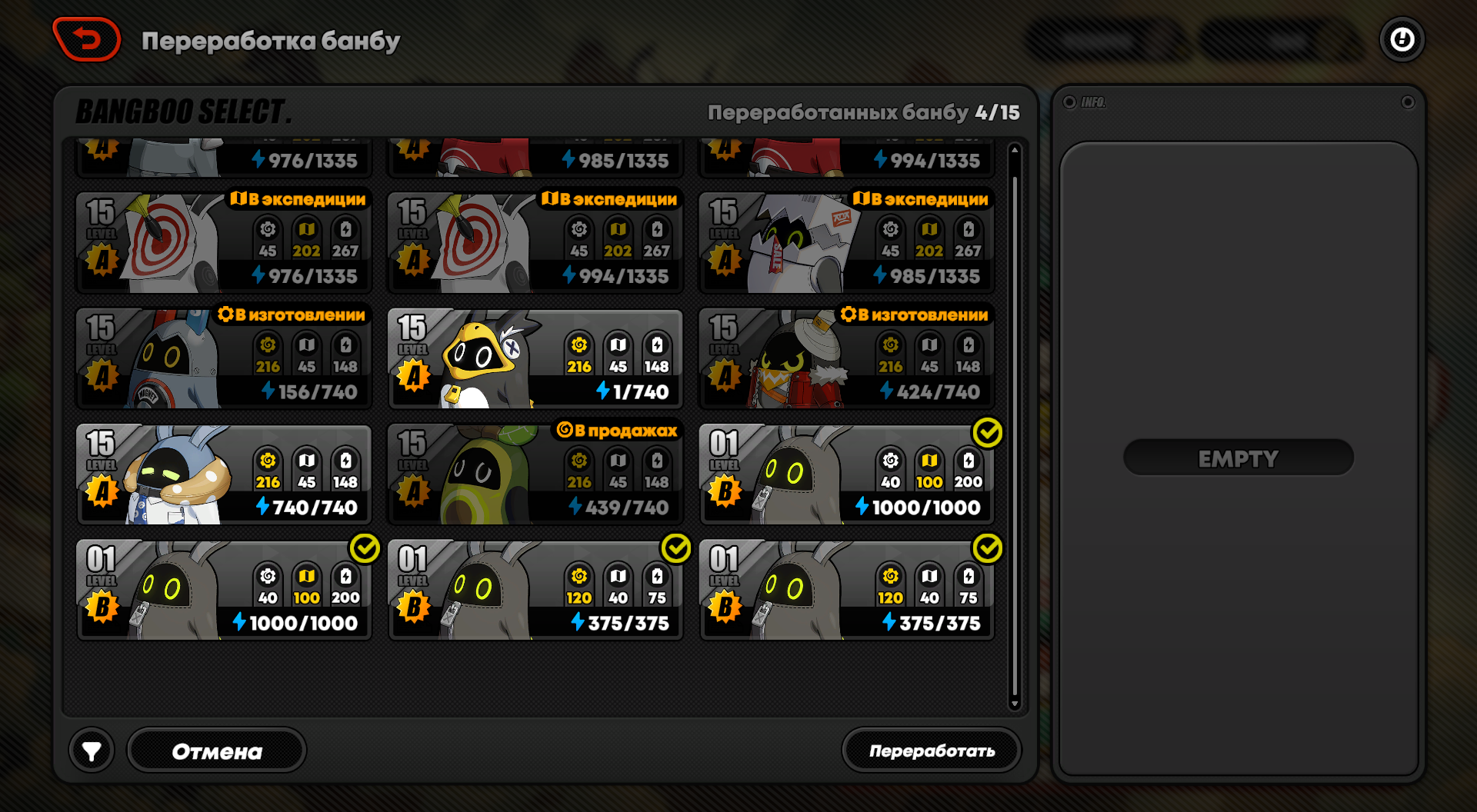 Чет жаба душит покупать по такому курсу, с другой стороны больше это монеты девать некуда вообще уже. Алсо я один такой ебанутый, завел 24 банбу для экспедиций, чтоб когда у кого то кончался заряд, всегда была замена? Еще двое в продажах и в идеале восемь в изготовлении надо, но пока не нашел с нужными перками.