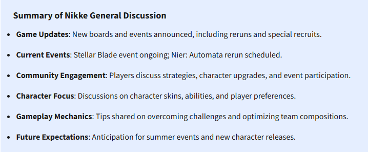 >Character popularity fuels much dialogue, with users debating who is the most “female” or “male” Nikke, favorite aesthetics, and which characters deserve skins or alt costumes. Diesel, Rapi, Centi, and others are frequently mentioned, sometimes with affectionate or humorous nicknames.