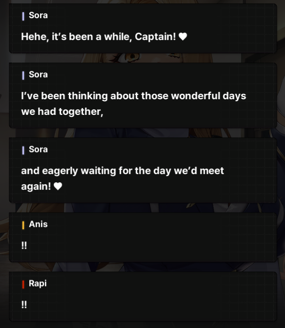 Так, то есть они просто перезапустили ивент, из наград буквально обычный магаз + летний чек лист со скинами? Я в целом так то и не против. Уже давно говорю о том, что все вот эти приколы с попыткой сделать никк каждой профессии сосет хуй. Бля какие самолеты в закрытом помещении площадью с Сеул? Че она там стюардерировать будет? ЛУчше бы делали типо ивент потом две недели мини игра какая-нибудь. Чтобы и было время на нормальный сюжет и девки не выходили хуйней из подгавна неинтересной. Алсо, нахуя они заставляют меня просиживать через историю ивента, которую я уже прошел. Типо ну дать прочитать ладно, но играть её еще раз зачем...