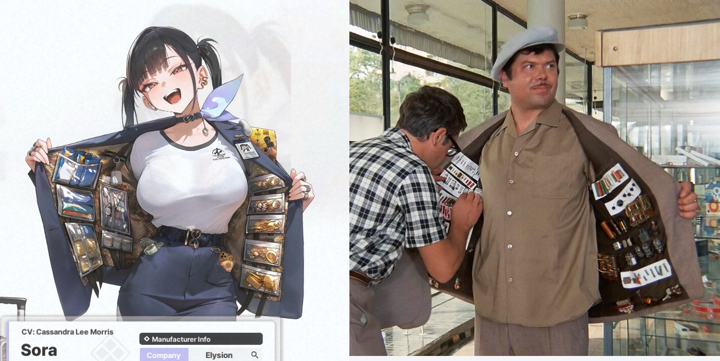 Шкикан всю сюжетку ее подозревал и выслеживал, чтобы предъявить за крысятничество, но у нее с самого начала пиджак нараспашку и видно краденные вещи. Не могли ей отдельный спрайт нарисовать что ли с запахнутой одеждой?