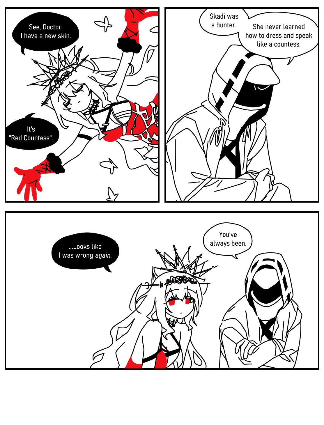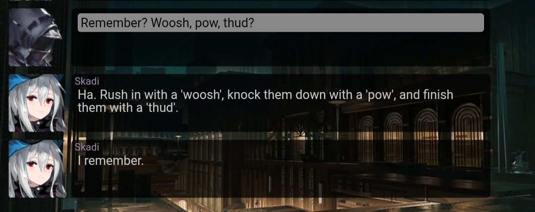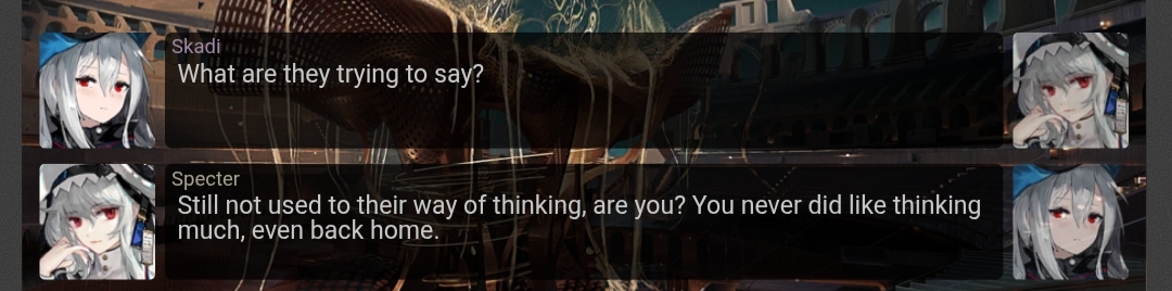His best ideas, though, are reserved for his Arts research. In the past, it was believed that Sarkaz witchcraft and modern Arts are entirely distinct branches in the history of Originium usage. One being powerful but unruly, bound to bloodlines and rituals, while the other is well-founded in scientific theory and accessible to the many. Logos was unwilling to accept this conventional wisdom at face value, but could not find substantial evidence to the contrary, whether in ancient tomes or modern journals. To his own surprise, though, he found his inspiration in a game of riddles with Mechanist. Mechanist had incorporated voice commands into his riddles, requiring the use of voice-activated devices to solve them verbally. When he accidentally solved a riddle by uttering an incantation, Logos realized that the rules and logic of incantations, a form of witchcraft ritual performed through language or music, could perhaps be applied to modern Arts as well. With assistance from Pith and Misery—and working through Banshee incantations as a test case—Logos successfully extracted the key component of Sarkaz witchcraft from modern Arts theory: the "semantics" of rituals, i.e. the caster's definition of goal and cost. The principles are complicated, but the conclusion is simple: he has unlocked brand-new possibilities for the application of Arts. Any modern Arts could theoretically be recreated through witchcraft by designing the proper incantation or ritual, including those used in large-scale industrial production. The converse is also true: it is not outside the realm of possibility that modern methods could be incorporated into the use of witchcraft. According to the Core convention, such an important academic breakthrough calls for the publishing of its own book. Perhaps the time had come for Kazdel to have its own foundational text. When asked, however, the young Banshee pondered the question, then said that he would wait until the day Kazdel truly needs it.
