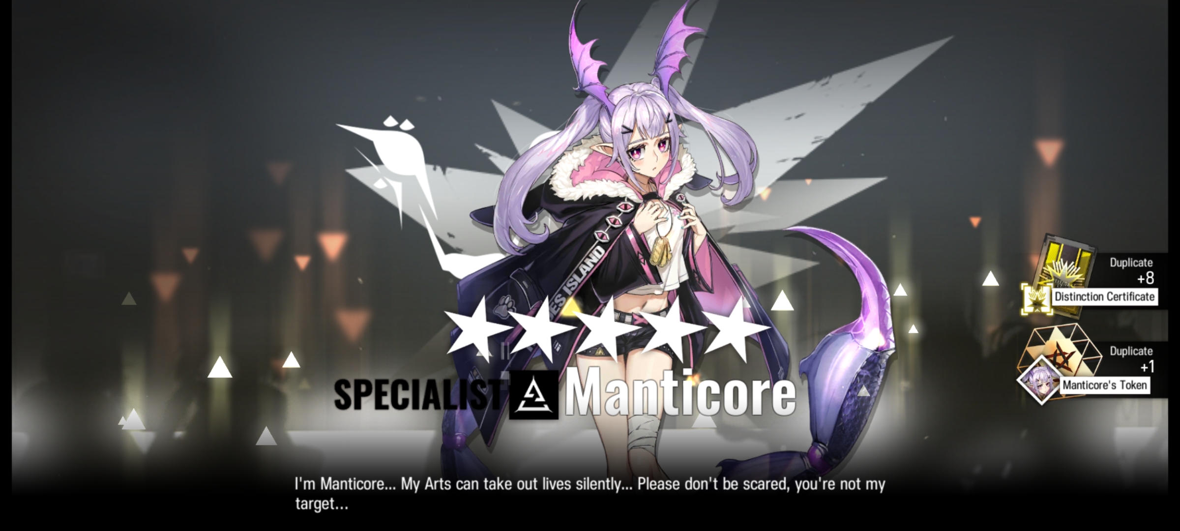 >>5159977 Апдейт по сертификатам Алсо, количество комбинаций тегов стало слишком уж большим, я даже понял что пропустил уже несколько раз 5★ в рекрутинге, банальный дефенс даёт эбать какие комбинации с другими, Мантикора же дуо из спец+сурвайвл