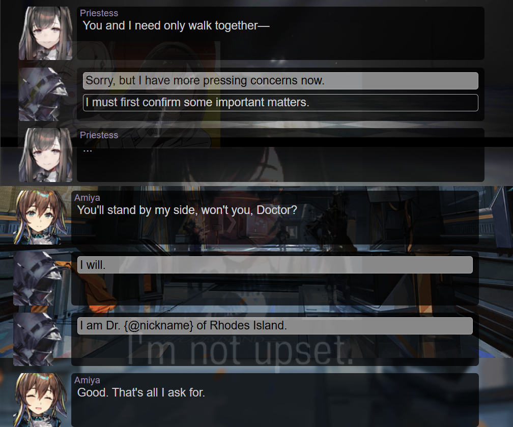 >>5175416 Грифам, давая подобные диалоги, надо сразу предусматривать максимально нейтральную сторону или вовсе ответы склонные к Присте. Приста и так во многом права, да и половина комьюнити на её стороне.