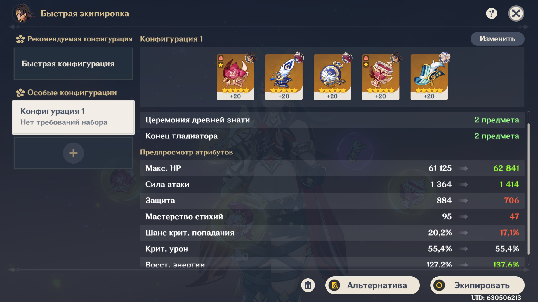 Почему в меню артефактов и в общей статистике показываются разные цифры ХП? То есть, действующий набор должен выдавать 61к, конфигурация 62к, а фактически уже есть 64к. Это из-за меча-колокола? Но вроде он не должен результировать именно в такую разницу