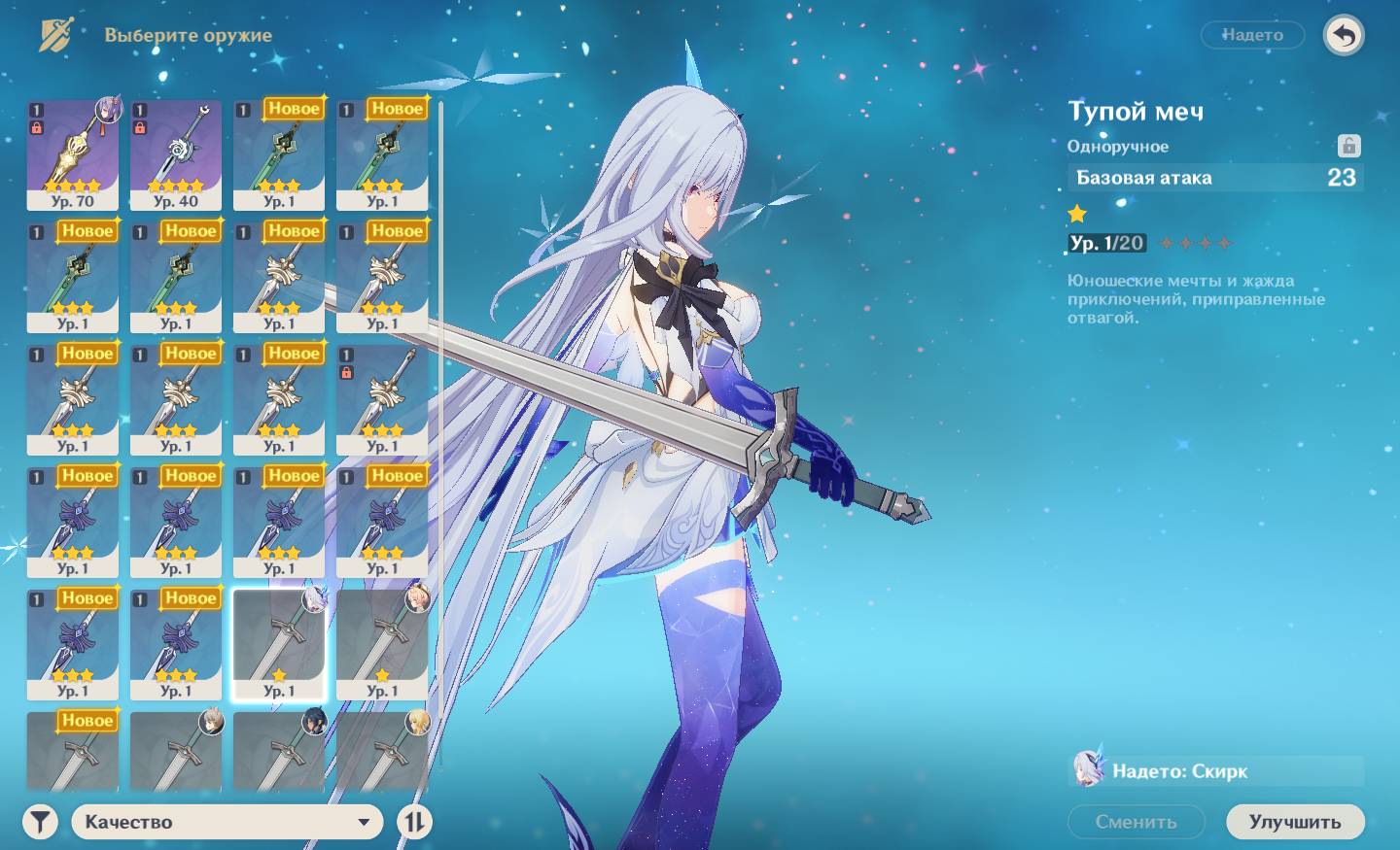 У меня жёсткий дефицит оружия. Нет ни одного меча, который по гайдам подходит Скирк. И вообще, единственный 4звёздочный - железное жало. Скирке лучше дать его или что-то трёхзвёздочное?