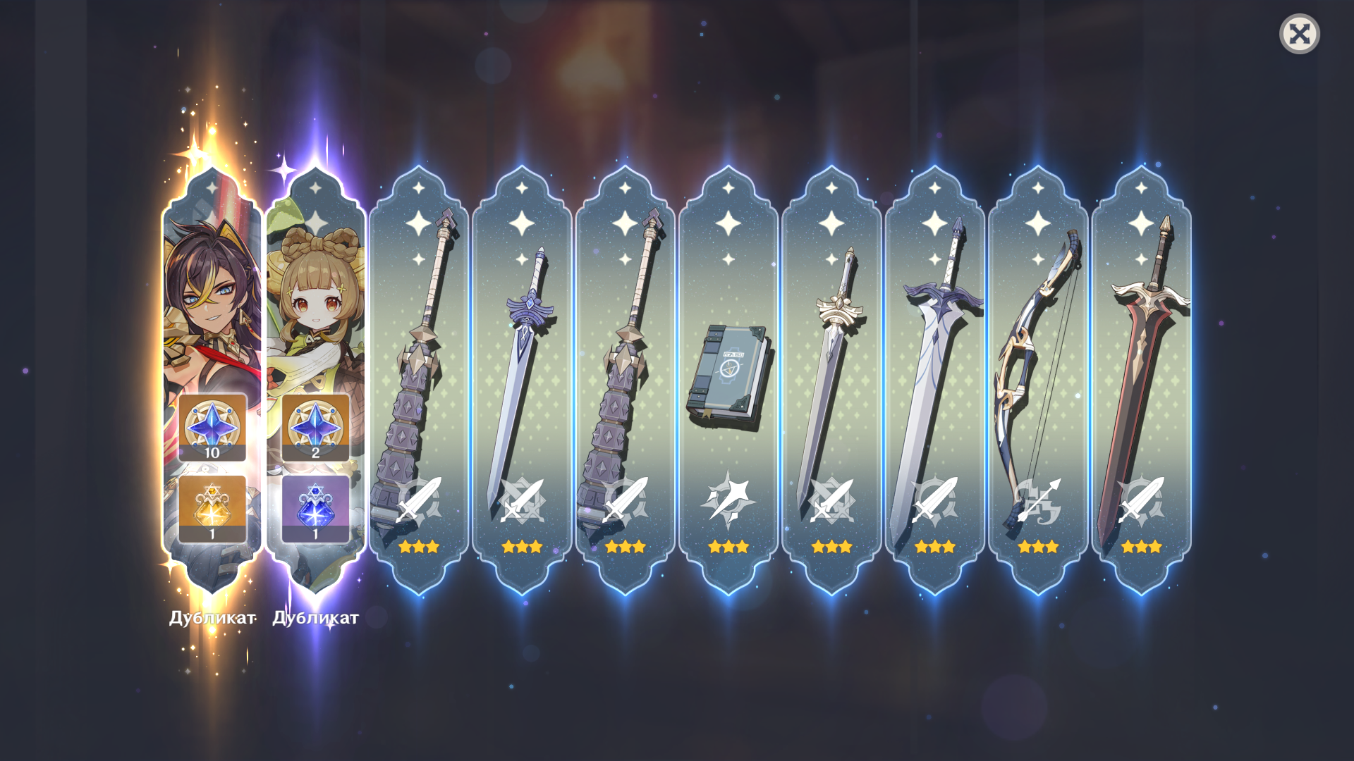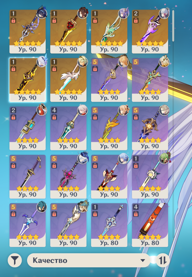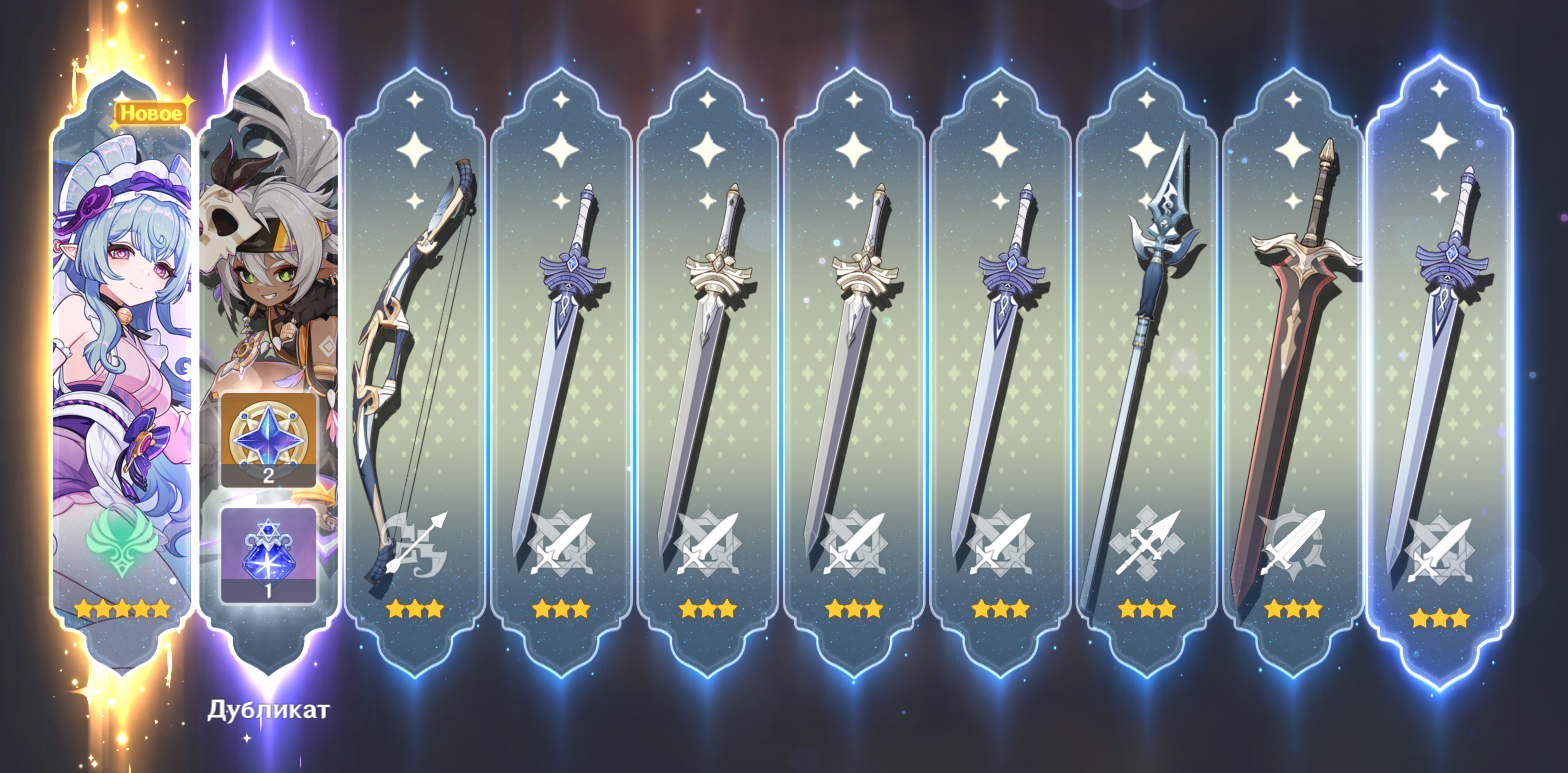 Всем бы такую выдержку. Я вот долго был чистым ф2п, потом покатился по наклонной и начал крутить оружку. И начало прикладывать так, как наверное мало кого в треде. Действительно видно нельзя крутить баннеры, где есть нечто ненужное. Вот из последнего - усмиритель бед. Не знаю, пишут, что на Эскофье подходит, но не уверен, что стоит небесную ось на него менять.