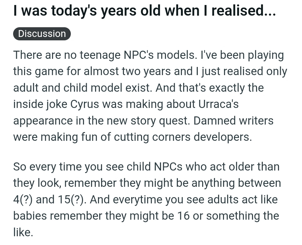 > Нам никогда не показывали ключ от космической капсулы ГГ, Как я и написал, это хуевый рояль в кустах, а не реткон. >а в новом сюжете нам это преподносят как уже известную инфу Вжушк, а как нам ещё могли преподнести наличие ключа у табибы? Он должен был удивиться? Типа "охуеть, а у меня же ключ все это время был?!". >В диалоге с Даунслейве говорится что путешественник спал в метеорите. Диалог в студию. >При битве с хранительницей порядка мы не видим как близнецы из этой капсулы расчехляются. Потому что как тебе и написал уже чел, ты полностью всрал таймлайн происходящих событий. >Пик 1 наверное они еще в метеорите У тебя скирк ровно так же летела в тейват без метеорита. Вообще не ебу о чем ты пишешь. >Пик3 уже на крыльях летают Не по космосу же вжушк.