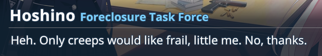 Прочитал. Даже весело было. Главы короткие и можно удобно порцировать чтение. Ненапряжно и даже весело. На сценах с банком и вовсе погоготал вслух. Не понял только финального мува Хошино с уходом к злодеям. В чём была задумка? Минуту назад она рвёт увольнительное и сэнсей предлагает ей на себя положиться, а в следующей главе она уже ушла в ЧВК.