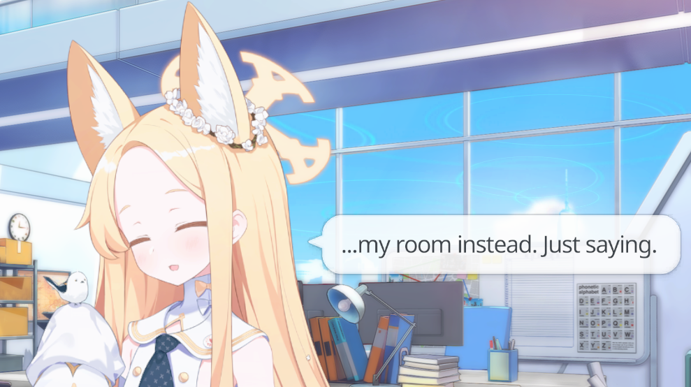 >>5175831 Буквально любой момент, после первого энкаунтера. Вот кстати вспомнил еще, что она в пляжном ивенте буквально Хину под сенсея подкладывала лол. А в недавнем реране серенады, если по ее пикче еще покликать в магазе, то она заигрывает с сенсеем. Иди короч либо ютубчик смотри, либо играй. Может тебе еще рассказать концовку Хошино?