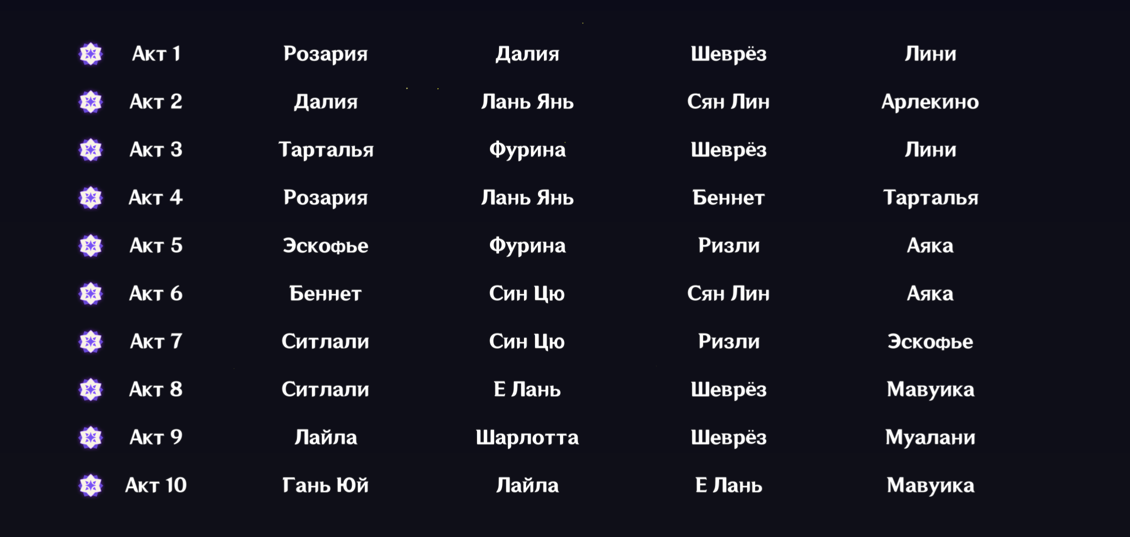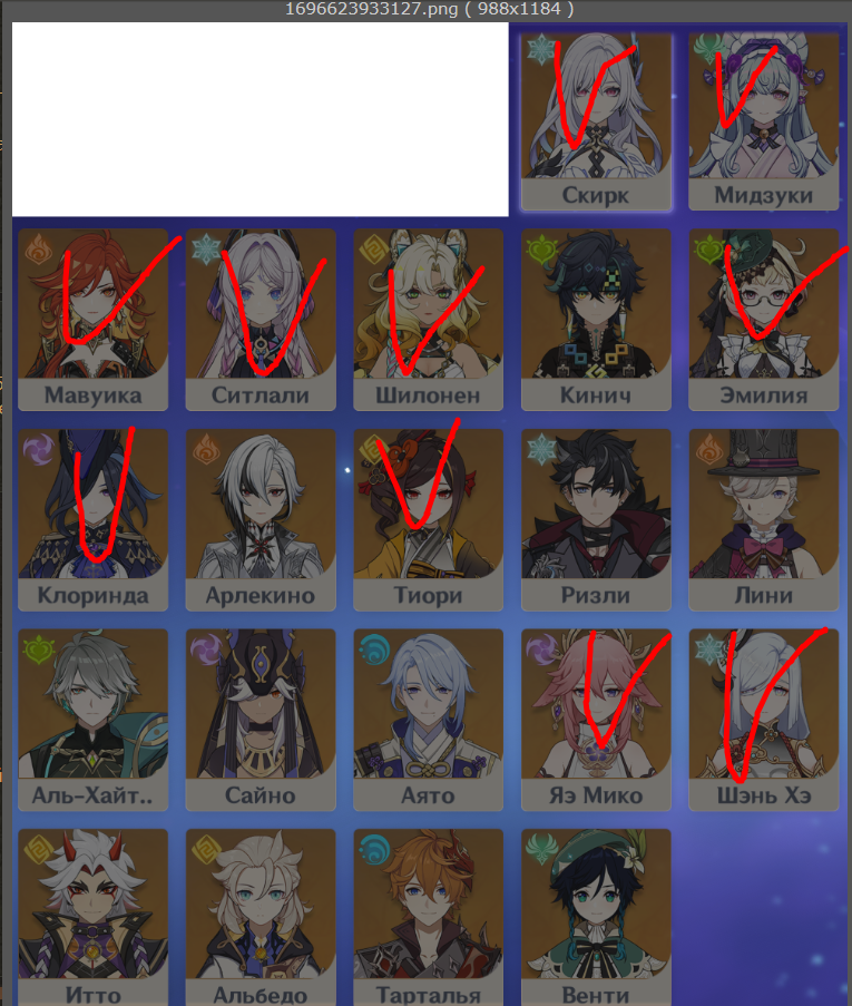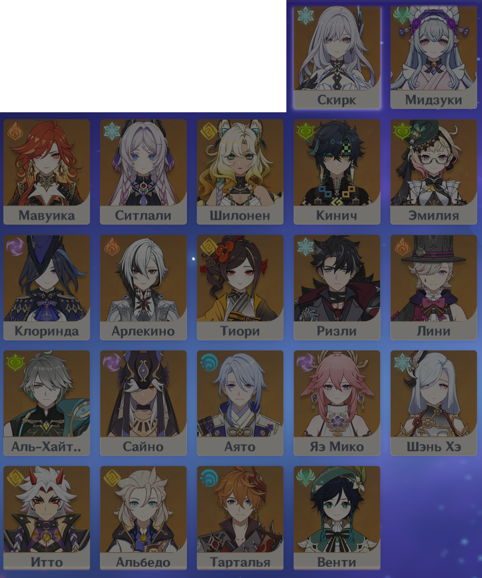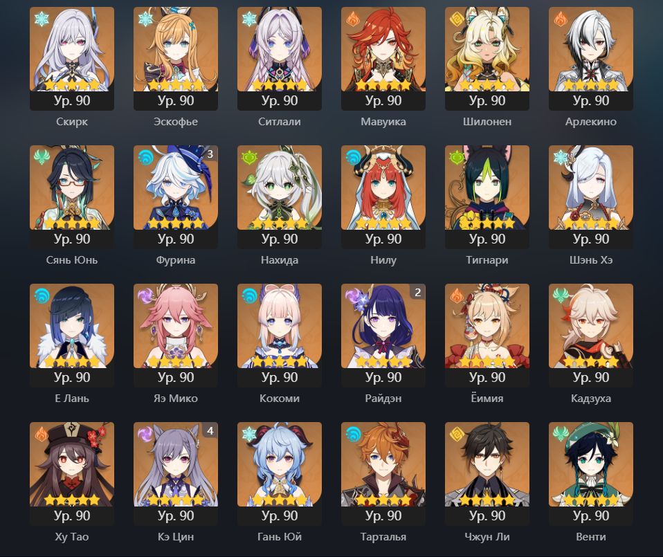 ✦ Показать персонажей картинкой https://akasha.cv/ (включая лидерборды по сборкам персонажей) ∙ https://enka.network/