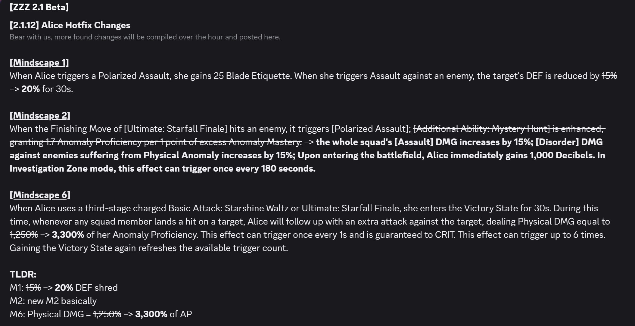 В геншине даже релизные персонажи актуальные за счет гибкой и продуманной системы реакций, которая создает комплексный тимбилдинг. Последний хардкорный режим это доказал. В ззз такого никогда не будет, здесь всё намного проще и игра уже идет по стопам Мужевоза с паверкрипами.