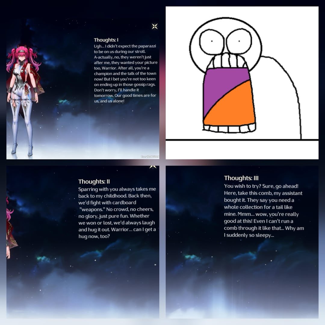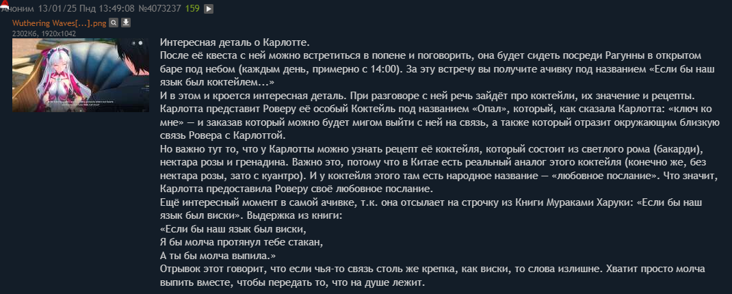>>5201923 Смотря что ты хочешь сравнить. ЛОРно, Шеньха ультрамегаебака местного масштаба, силой не ниже адептов, а возможно и выше. Вплоть до того, что ЛОРно, по заложенным сюжетным тропам, её возможно стоило уничтожить, а не растить и сдерживать её сущность. То, что она геймплейно хуйня, мы опустим, та же Пяка, такая же нулевая хуйня с релиза. Касаемо твоего "рукой жопу подтирает", это двощеры уже накидали. Сама по себе, Шеньха, просто нелюдимая, но воспитана Цаплей, которая и ЛОРно и визуально, явно беспокоится о своём внешнем виде и состоянии. В общем, я понимаю к чему клонит этот анон >>5201886. Но в Геншине вообще бед с ЛОРным обоснованием, из-за чего, те, кто не погружён достаточно, не поймёт к чему отсылка.