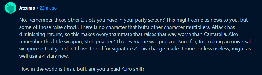 >>5202987 Тут вроде держателей акций куро нет. Я как игрок хотел бы чтобы геншин и дальше держал свою аудитории от других проектов, как бочка с говном доски. Так что вува ровно там где должна быть.