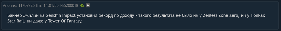 Баннер Эмилии из Genshin Impact установил рекорд по доходу - такого результата не было ни у Zenless Zone Zero, ни у Honkai: Star Rail, ни даже у Tower Of Fantasy.