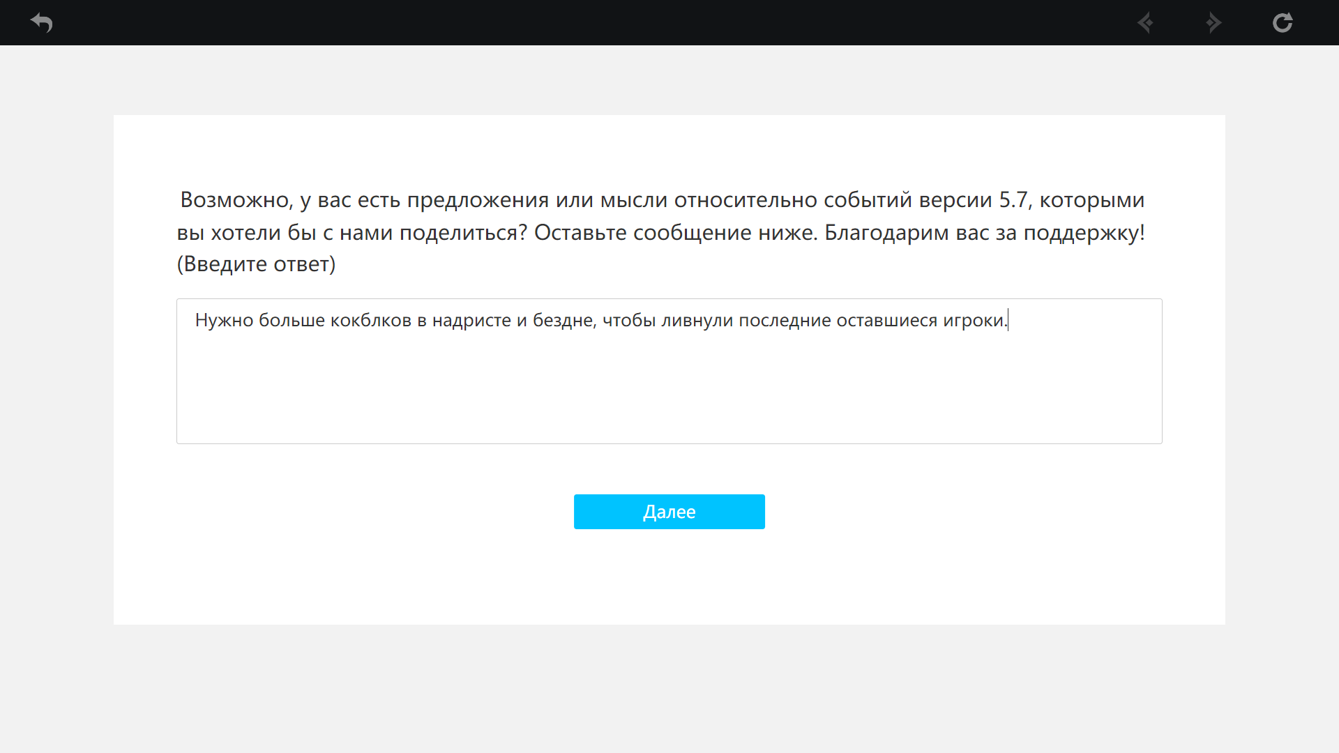 Ого, я только в игру зашёл, а там оказывается опрос по надриску. Ну что, как думаете, Ляве хуёв в опросе напихают по полной? Я выбрал везде "Крайне недоволен", и в кои-то веки это было чистейшей правдой.