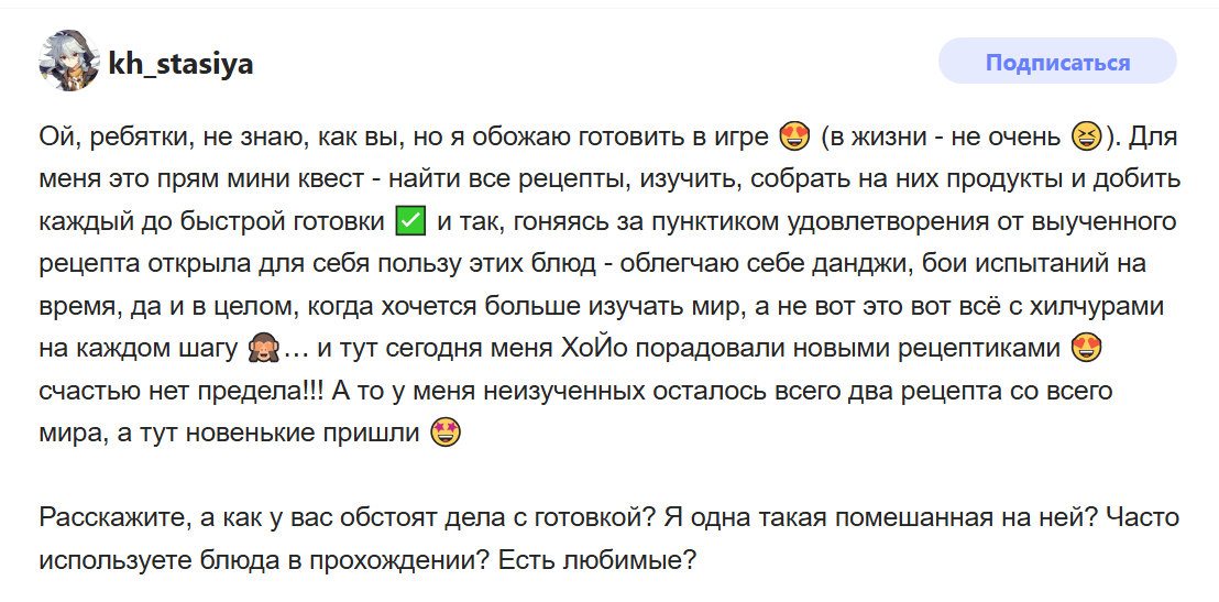 Кста, рецепты на РУ серверах гашни тоже уберут, так как форсс еды. Будем лечится только у статуй архонтов в ЛиЮэ и Снежной, остальные статуи архонтов будут отжирать хп и дебафать пачку.