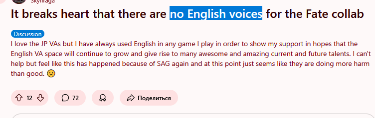 Может быть и хорошо, что у Геншина коллабы только с ресторанами еды. Вы можете себе представить, что Ляо вбухал половину всех своих денег в коллаборацию, где: 1) Из нового контента буквально 3 модельки (Сейбер, Арчер, Лансер) и несколько иконок. Нет ни одной специально сделанной для коллаба локации или даже вражеского моба. 2) Половина сюжета проходит в тишине (на всех языках), и оправдывают СЮЖЕТОМ (герои попали в немое кино, они не могут говорить) 3) Главный злодей ВЕЛИКОЙ КОЛЛАБОРАЦИИ, КОТОРУЮ ЖДАЛИ ГОД — НПС из высера Ляо, который уже светился в прошлых говноивентах.