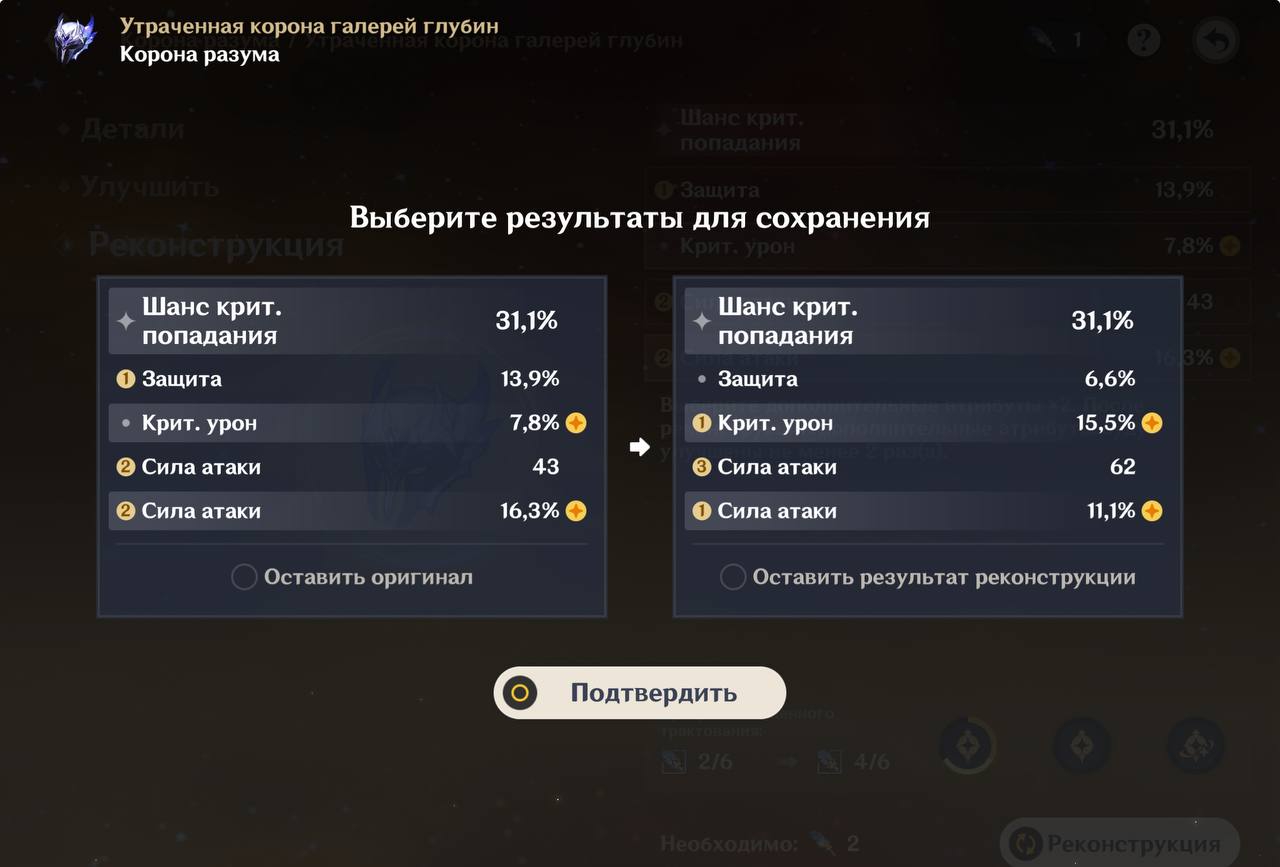 Все равно, перья - это мусор, слишком мало попыток, чтоб всерьез рассчитывать что-то получить, гораздо больше шансов у обмена через алхимию, по сути, сейчас это самый надежный способ получить нормальный (овер 30 кв для кубка/часов, в районе 40 для пера/цветка) арт из нужного сета. На втором месте данж, там куда больше рандома, ведь может спамить вторым сетом, а не тем, что нужен, так что артов больше, но шанс на годноту меньше, чем в алхимии. Меня вот жестко прикладывало с охотником, как появился в алхимии, так сразу и пару сетов собралось, на хэпэ и атаку, прям за неделю собрались.