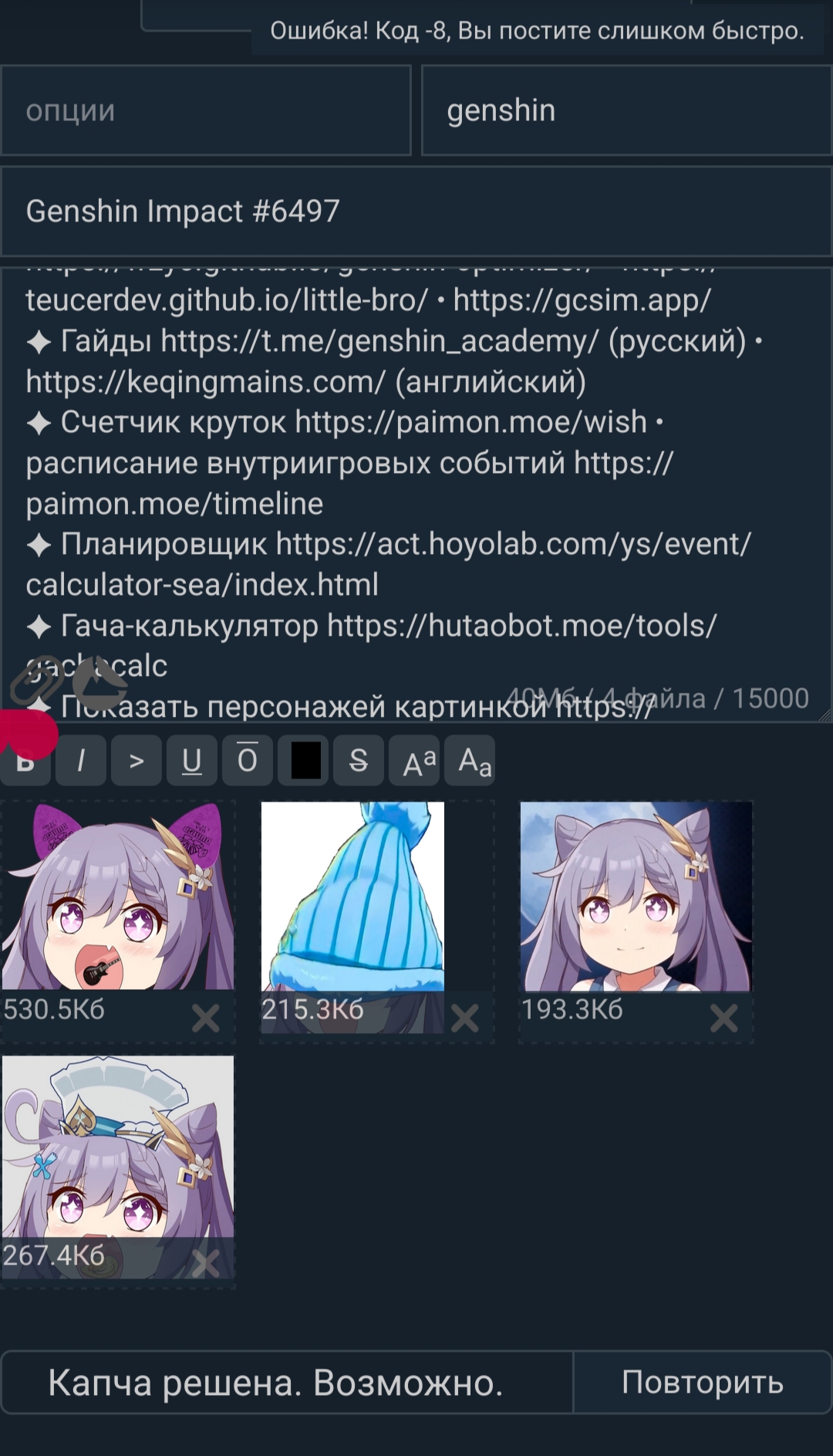 >>5216173 Нет, мне нужен был совет по прохождению безды я его получил, смог закрыть 11 этаж на все звезды. У меня далеко не идеально собраны и прокачены персонажи чтобы легко проходить контент и порой я не правильно собираю команды и часто не знаю механик каких то не знакомых противников что ещё сильнее усложняет прохождение контента.