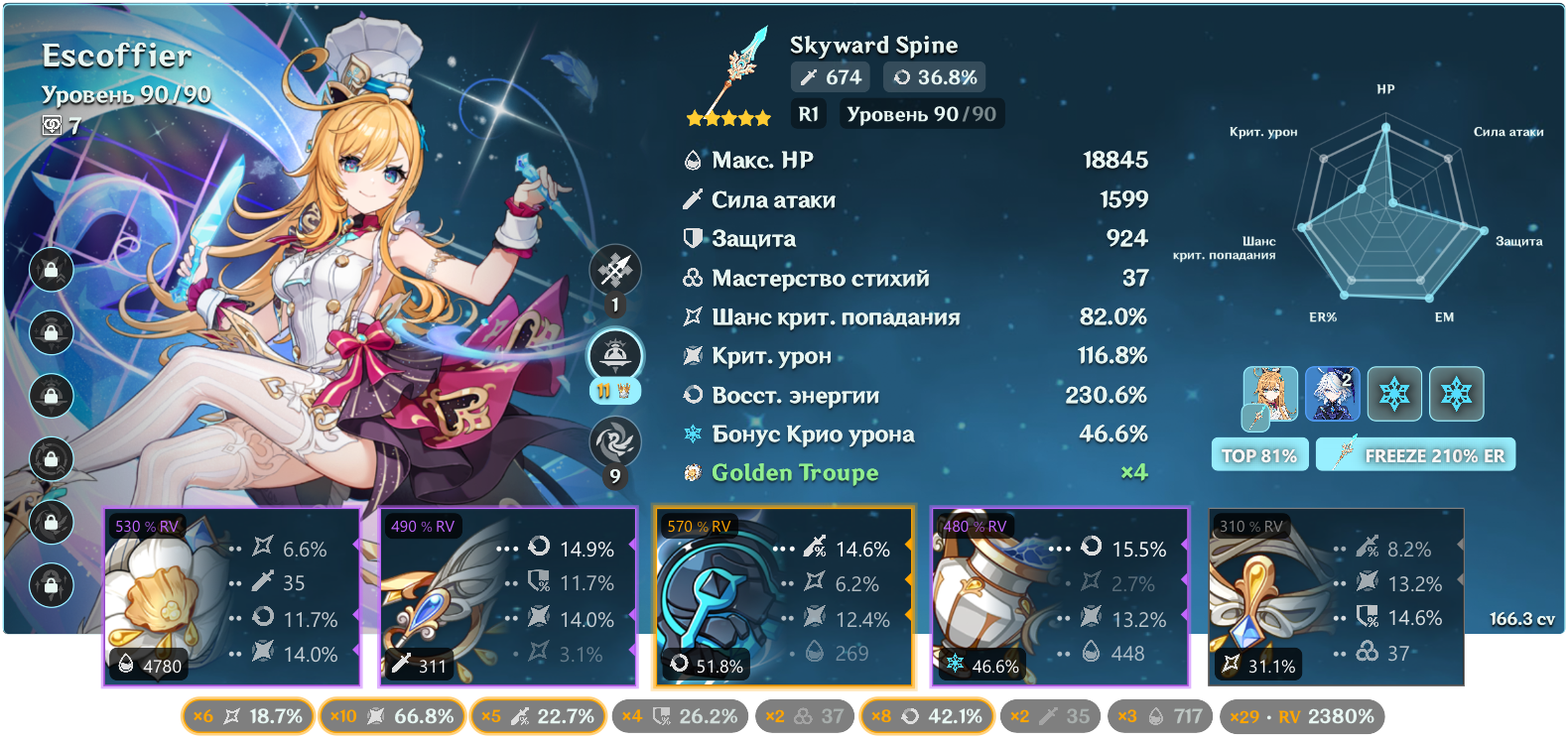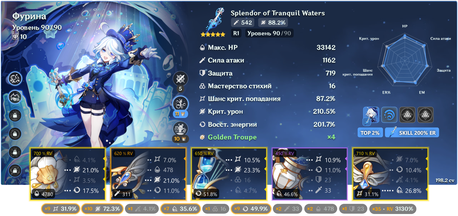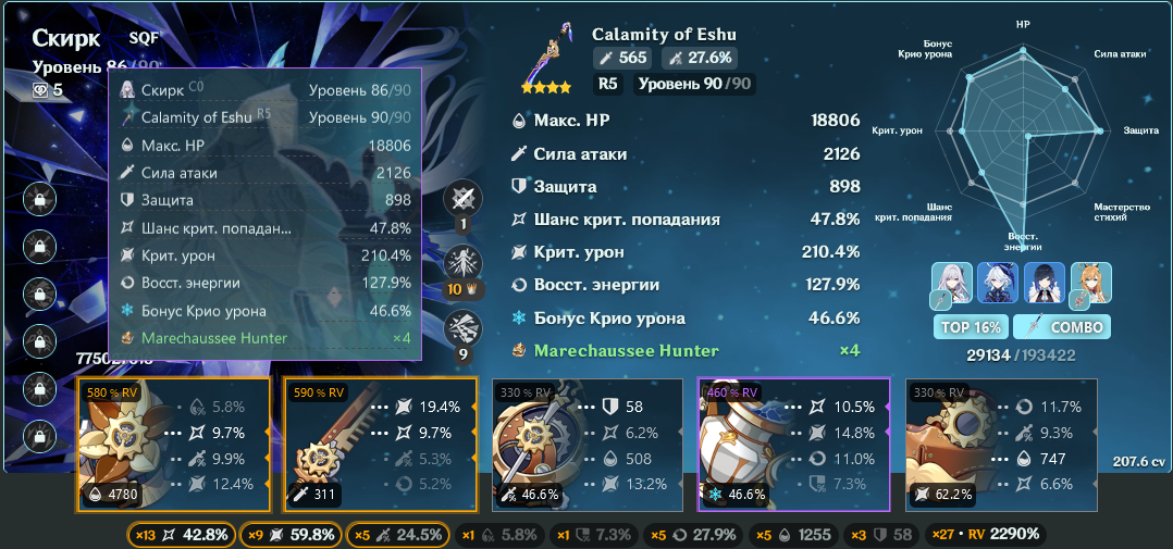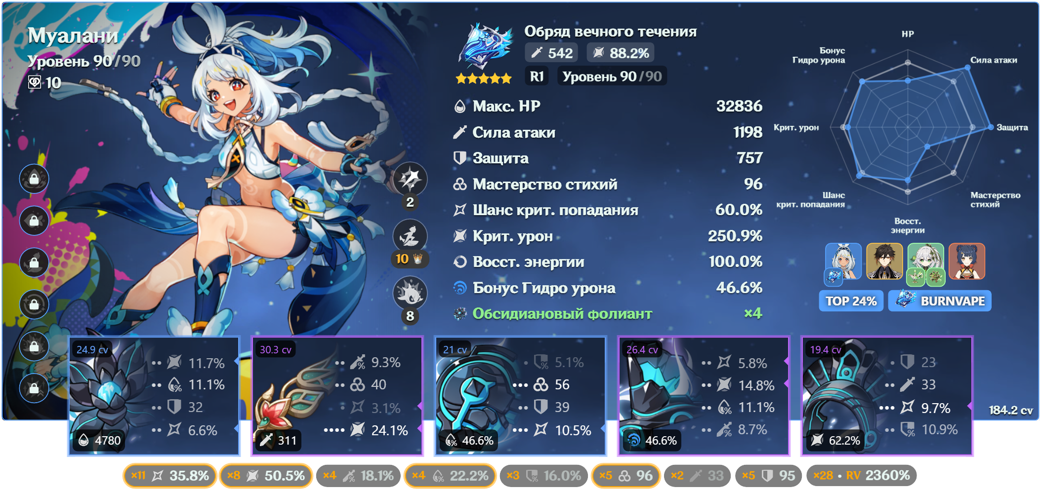 Ну и мса у тебя кстати мало. Надо 450-500 чтобы было под баффами от сапов. Если играть с Нахидой, то своего мса должно быть 200+.