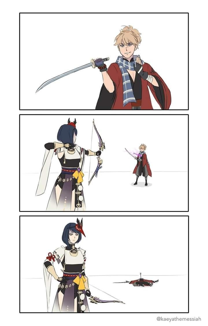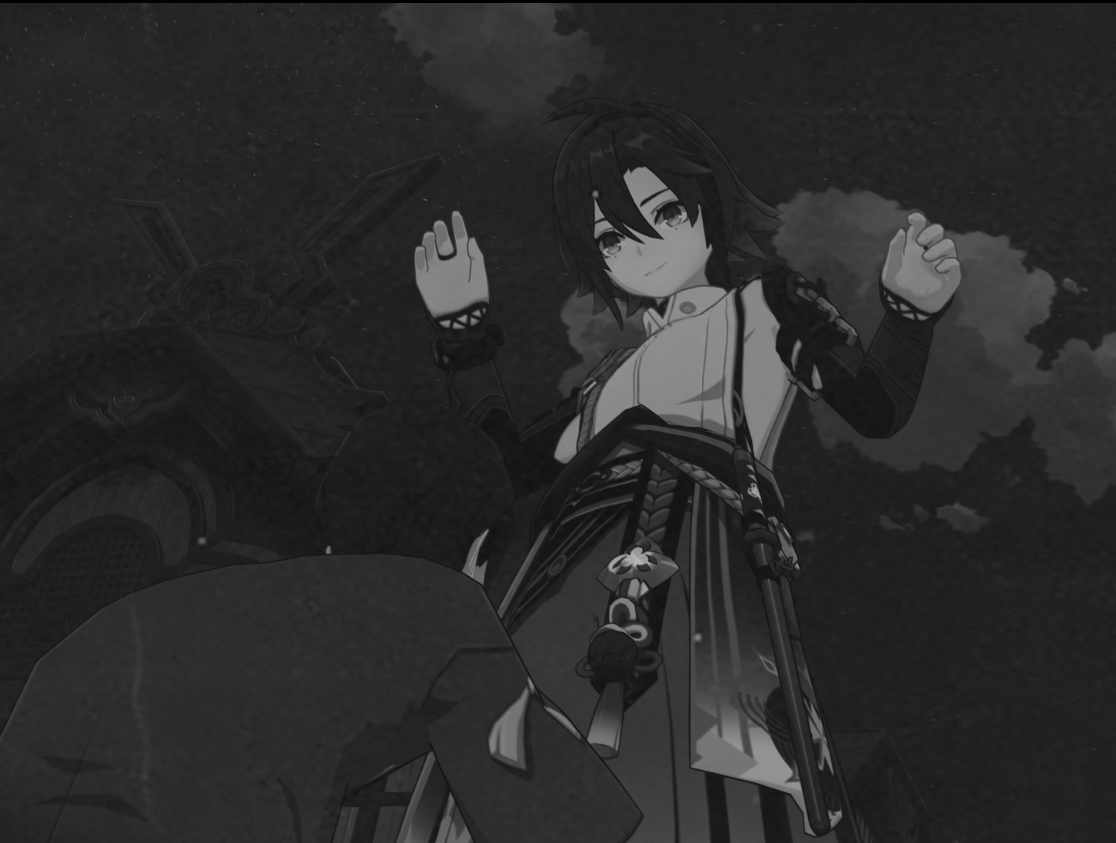 Бедная Сарочка. В этой ужасной Инадзумии у нее совсем нет друзей, и никто не может поддержать ее по-товарищески. Единственное, что остаётся ей для утешения, - это бесчеловечная индустрия эскапизма, созданная одной из тех, кто довёл страну до такого состояния. Эта же индустрия возвела её одержимость вторым тираном разрушившим страну до состояния неадекватной одержимости.