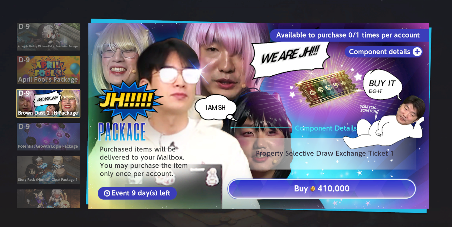 These collaboration characters do not feature any new battle gimmicks and were balanced so that existing BrownDust2 characters would be strong enough to replace them. This was a decision made to avoid repeating past mistakes, as previous collaboration characters were too powerful, offering no way of replacement for players who started the game later.