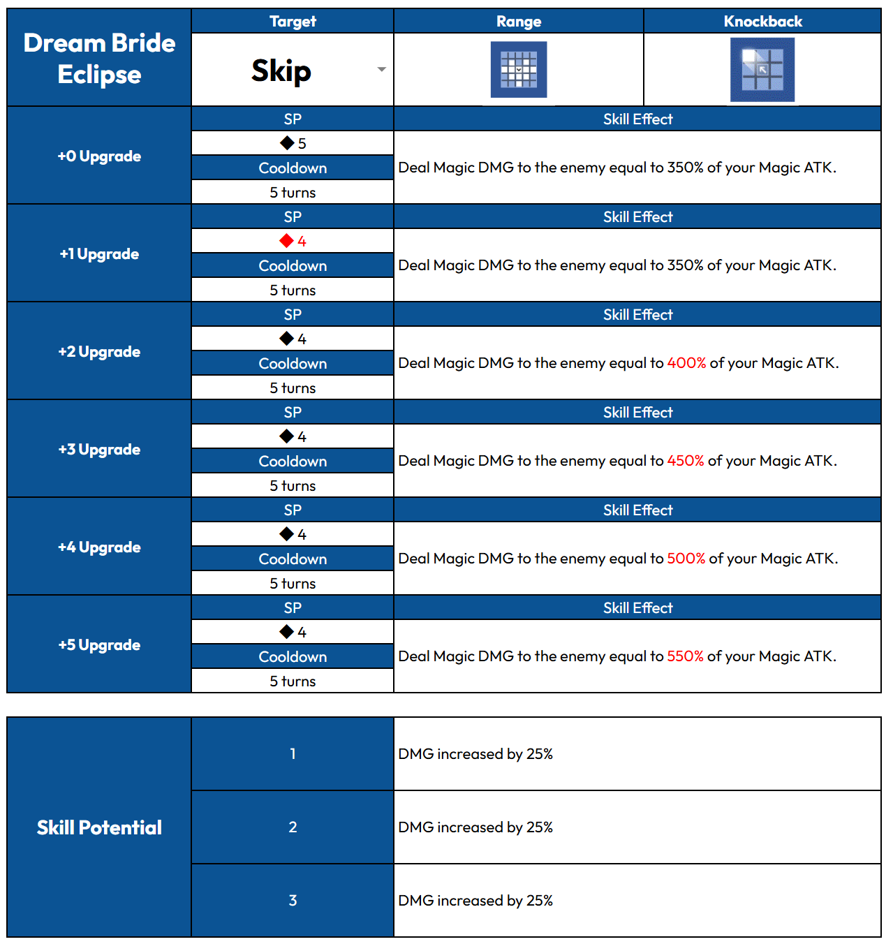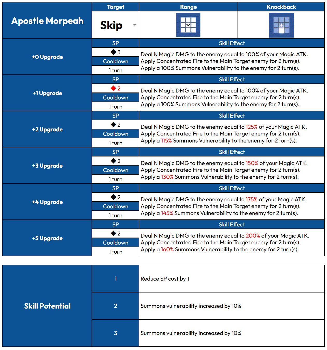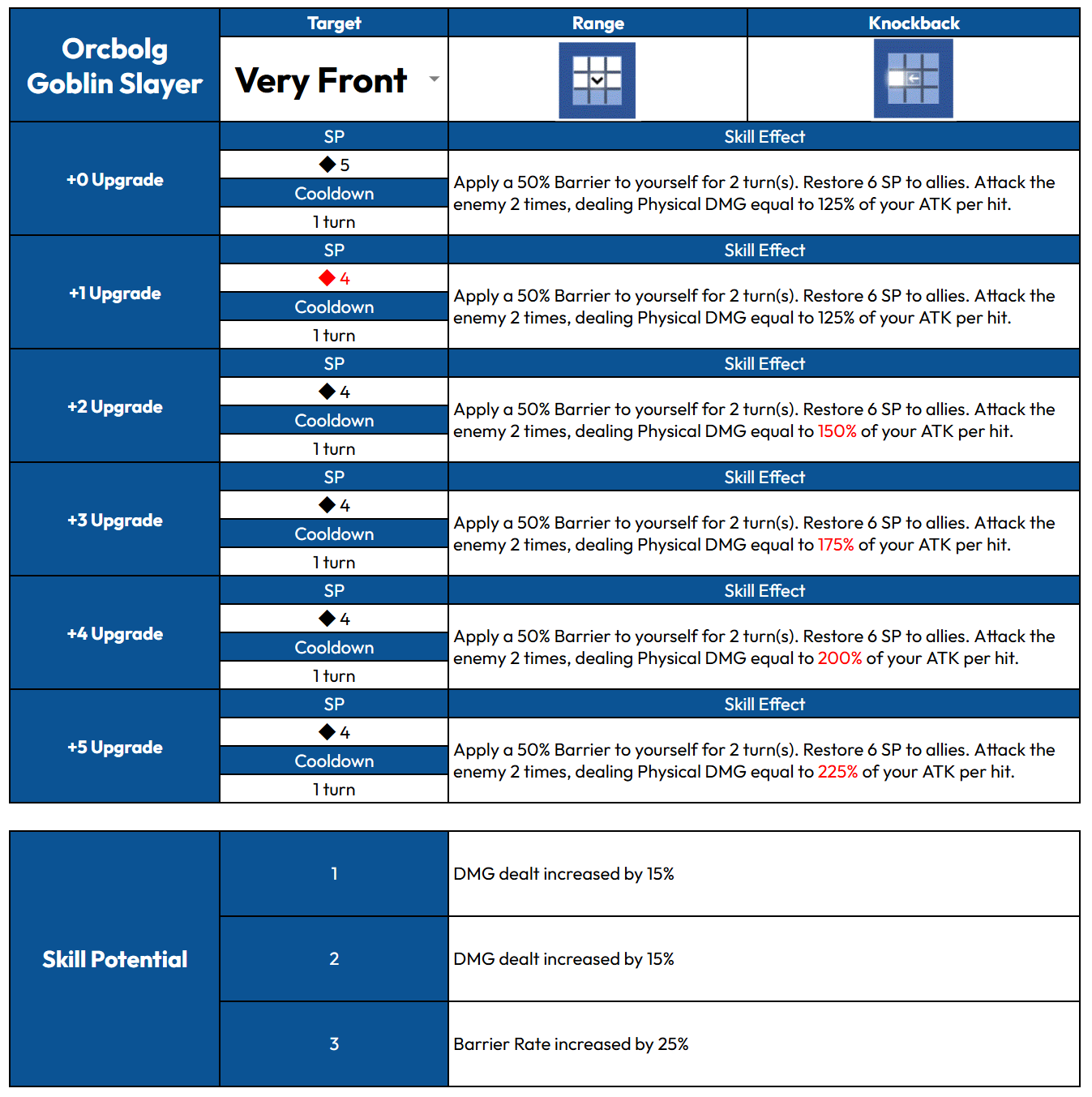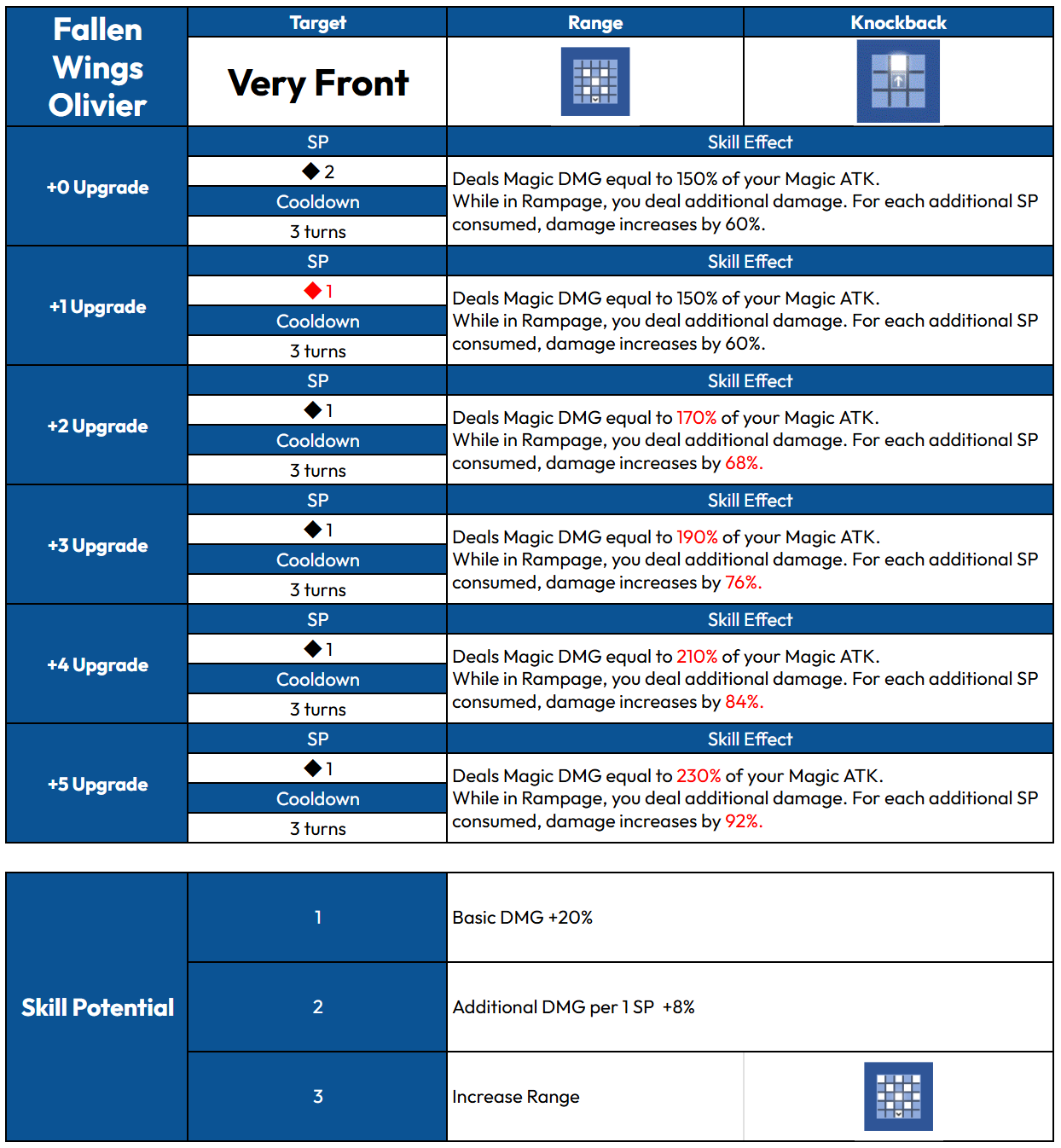 Rampage - Consumes all remaining Sp to amplify the skill's power. - Any SP gained during the attack turn will not be used. - If multiple characters enter Rampage at once, the remaining SP goes to the character with the fastest attack order. - If the character dies before the skill activates, the SP consumed is not refunded.