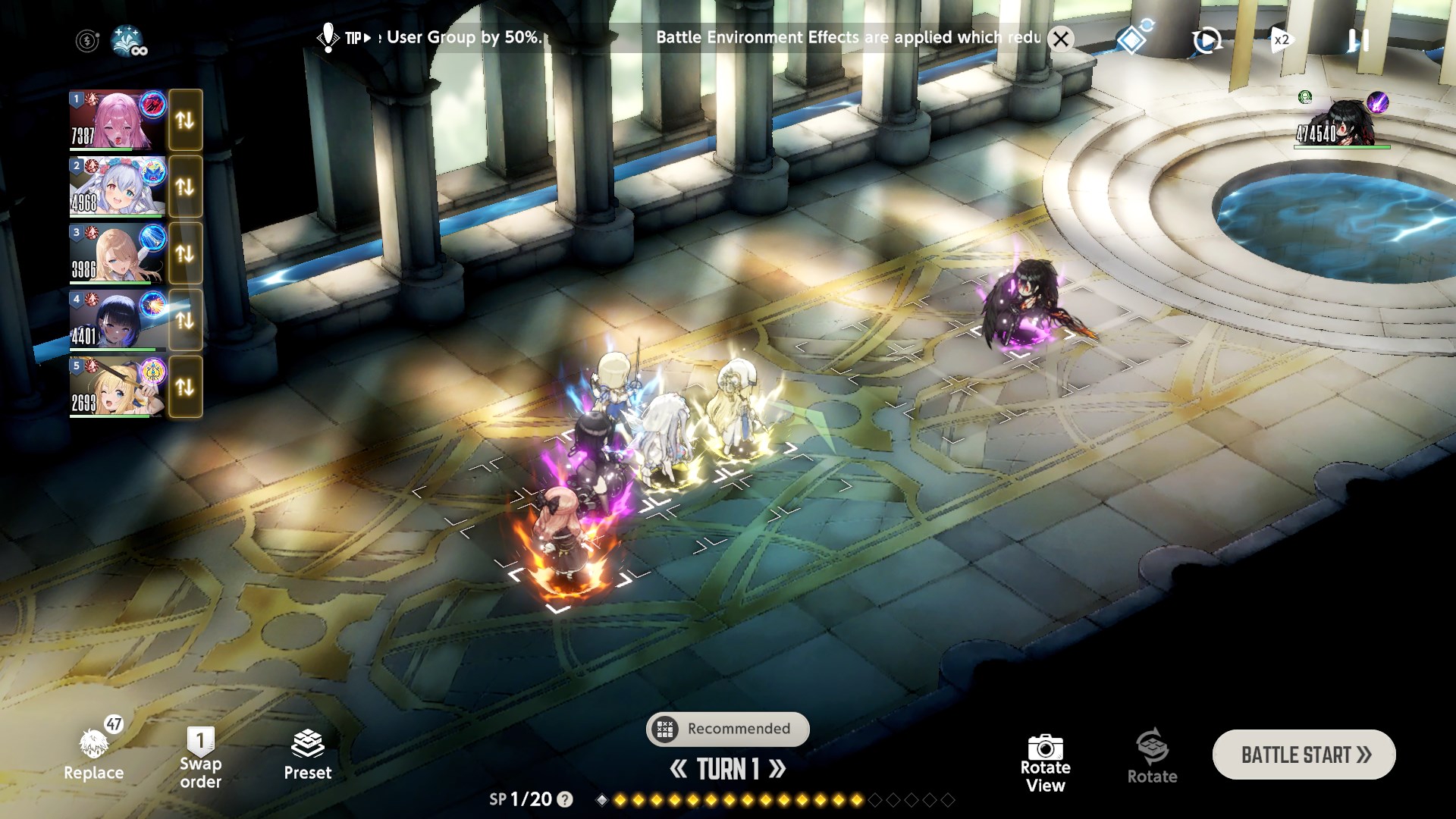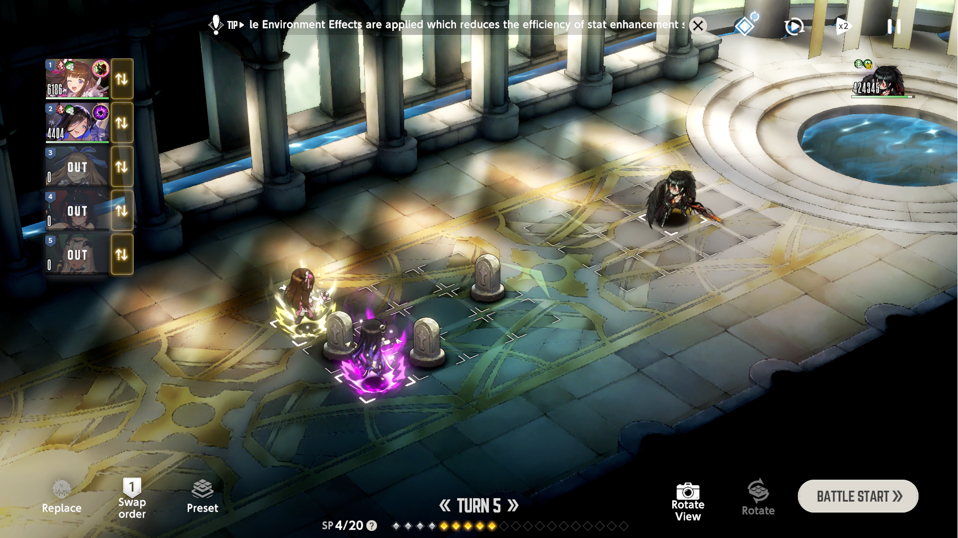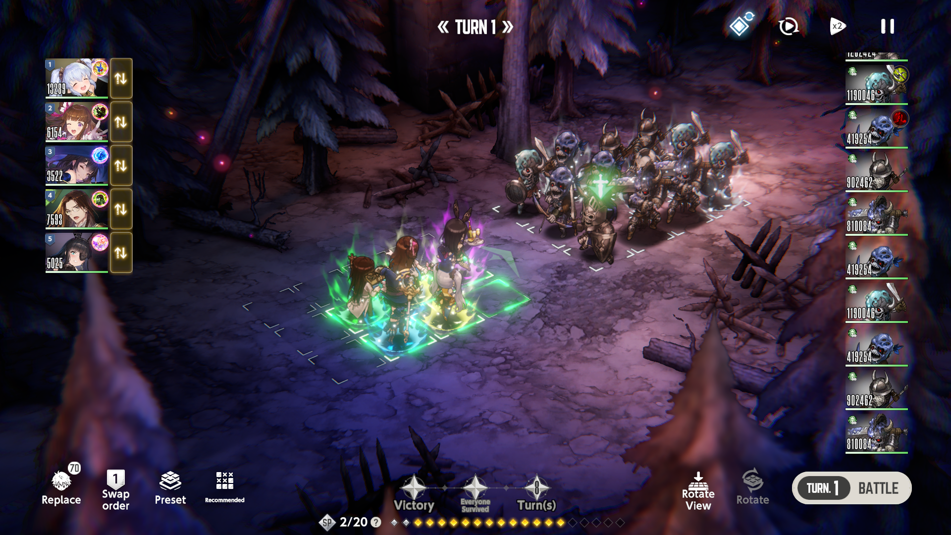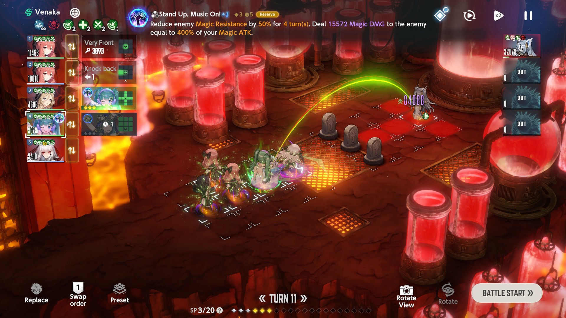 Rampage - Consumes all remaining Sp to amplify the skill's power. - Any SP gained during the attack turn will not be used. - If multiple characters enter Rampage at once, the remaining SP goes to the character with the fastest attack order. - If the character dies before the skill activates, the SP consumed is not refunded.