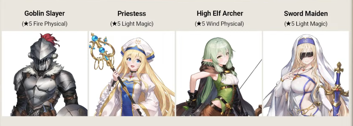 https://www.browndust2.com/en-us/news/view?id=6450 >Goblin Slayer is a Fire Property physical damage dealer. His battle concept allows him to harness various tactics beyond attacks. >He showcases tanking capabilities with an incoming damage reduction buff and serves as a supporter in battle with an SP Recovery buff. >He has been designed to be a versatile character, as he can use his skills at every turn. Как топ Хелена? >Priestess is a Light Property magic damage dealer and debuffer. She supports allies by inflicting Magic Property Vulnerability on enemies. >She also features a battle concept that deals magic damage. Спортивная Левия, только на следующий ход не дамажит как чёрт? >As a Wind Property physical damage dealer, High Elf Archer's battle concept allows her to attack enemies in a horizontal range with guaranteed Critical Hits. >Designed as an easy-to-use ranged damage dealer, she can inflict guaranteed Critical Hits with her own buffs without needing other buffs that increase Critical Hits. Автокрит по линии, видимо для ньюглутти без бафферов персонаж. >Sword Maiden is a Light Property magic damage dealer who engages in combat with consecutive hits on a cross-shaped range. >She has been designed with a simple yet versatile battle scheme to be used easily in battle. Какая-то миниверсия офисной Микаэлы, судя по всему особого дамага не будет.