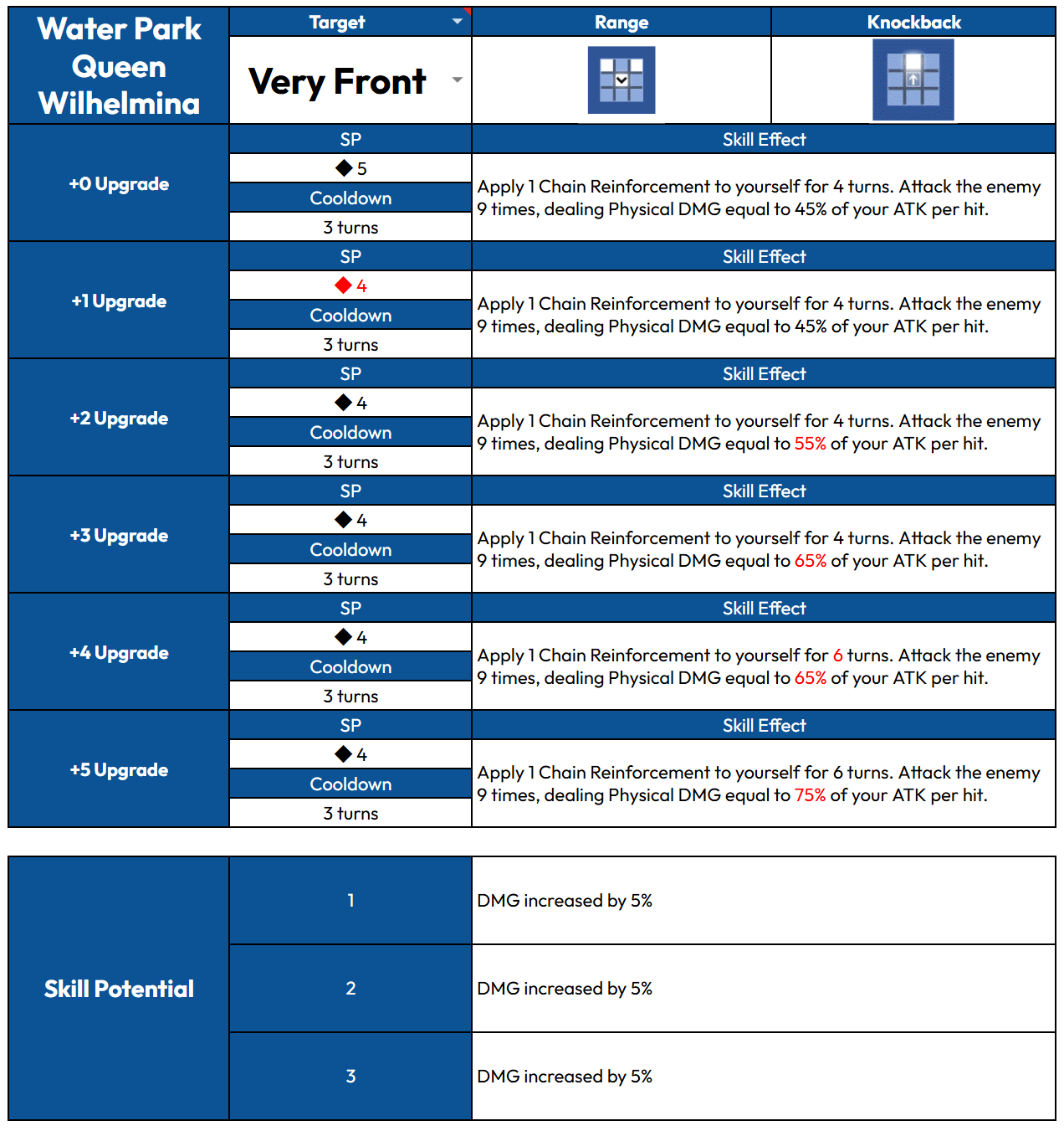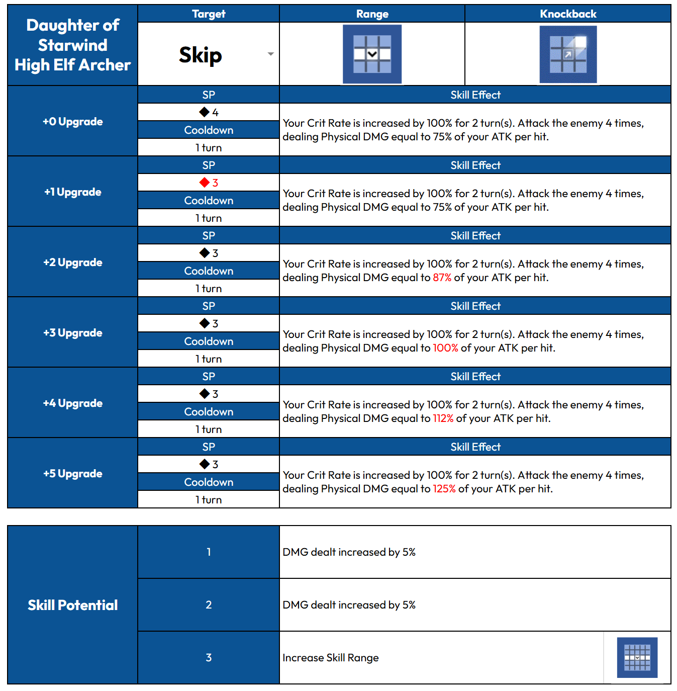 >>4644006 У адмиралки +2 и +5 только щит дают, +1 и +4 для дамага, +3 для сп. Её больше апгрейды улучшают чем дюпы, в принципе и +1 уже долбит нормально. У жопастой мечницы вроде тоже +1 вполне норм, потому что у неё процент баффа в следующий раз поднимается только на максимал очке.