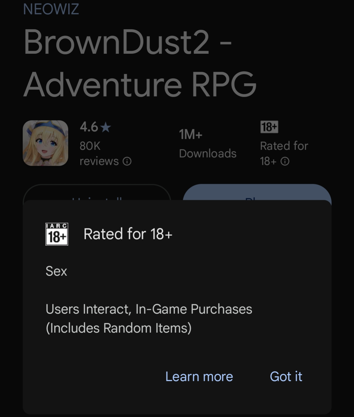 We would like to inform you that BrownDust2's age rating on Google Play has been changed to "PEGI 18 / IARC 18+".