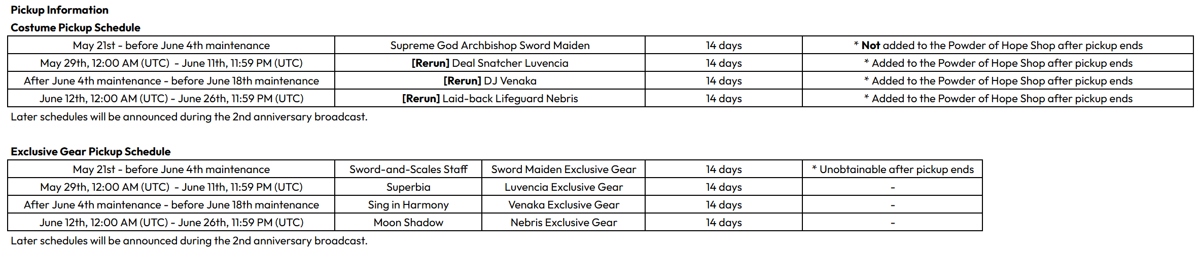 >5. Other Notices - The Newbie Pass will be renewed with the 2nd anniversary update, and the current Newbie Pass will end at the time of the update. ㄴ If you haven’t completed the current Newbie Pass, please do so before the 2nd anniversary update to claim your rewards in advance.