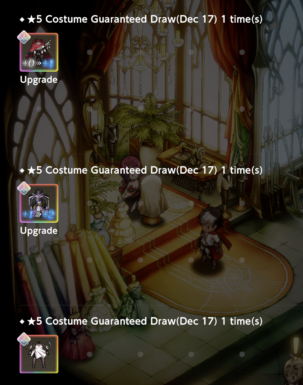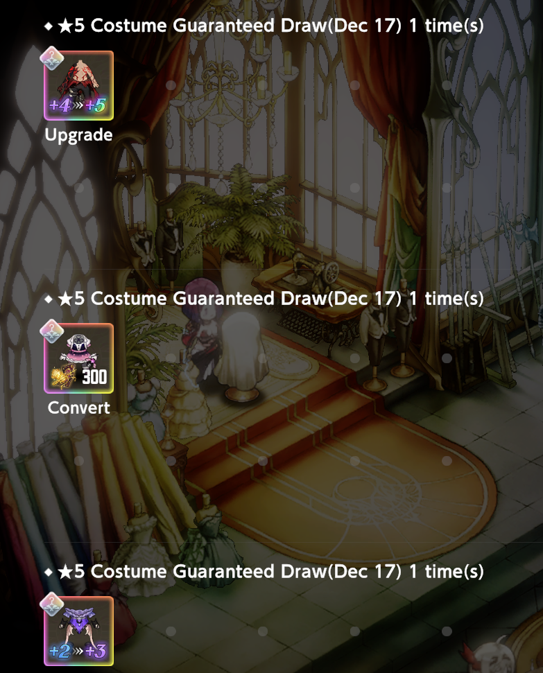 Вкатился позавчера из Жопок, соблазнившись жопкой >>4610388 Скам. Жопок в игре нет, смотрю на чибиков подавляющую часть времени, анимации вижу только на главном экране. Вильгельмина не выпала... ВООБЩЕ НИХУЯ не выпало рейтапнутого, падал исключительно офф-баннер. Не то чтобы я был сильно против, Венака кьют и тащит со своими двумя костюмами (базовый тоже упал). Ещё бы у меня баффер для магов нашёлся, да. Ник Sarru, заяву оформил.