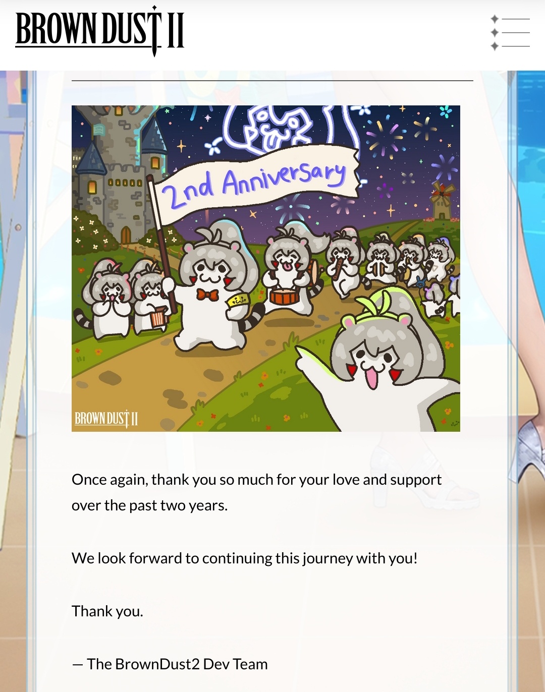 Там разрабы ещё один пуксреньк выложили, теперь по поводу Девы-Мечницы: https://www.browndust2.com/en-us/news/view?id=6779 "У нас короче анонс был неправильный, не бомбите, вот теперь правильные статы".