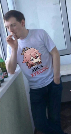 За что ж? Ответствуйте за толи, Что тяночки пылающей страны Нас возбуждали так, что в яйцах - боли Пока от злости содрогались вы. За толь, что Безду мы закрыли Вайфушками, и содрагнулся мир И кровью жёнок искупили Тейвата вольность, честь и мир?