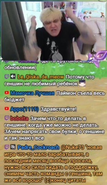 Алсо, судя по видео, в чате критикуют геншин, но стример Нуке73 защищает игру и орет на свой чат. Так хуле он тогда дропнул генш, если был таким яростным поклонником? И главное, сколько времени прошло с этого стрима до момента его позорного дропа и проеба нафармленной аудитории?