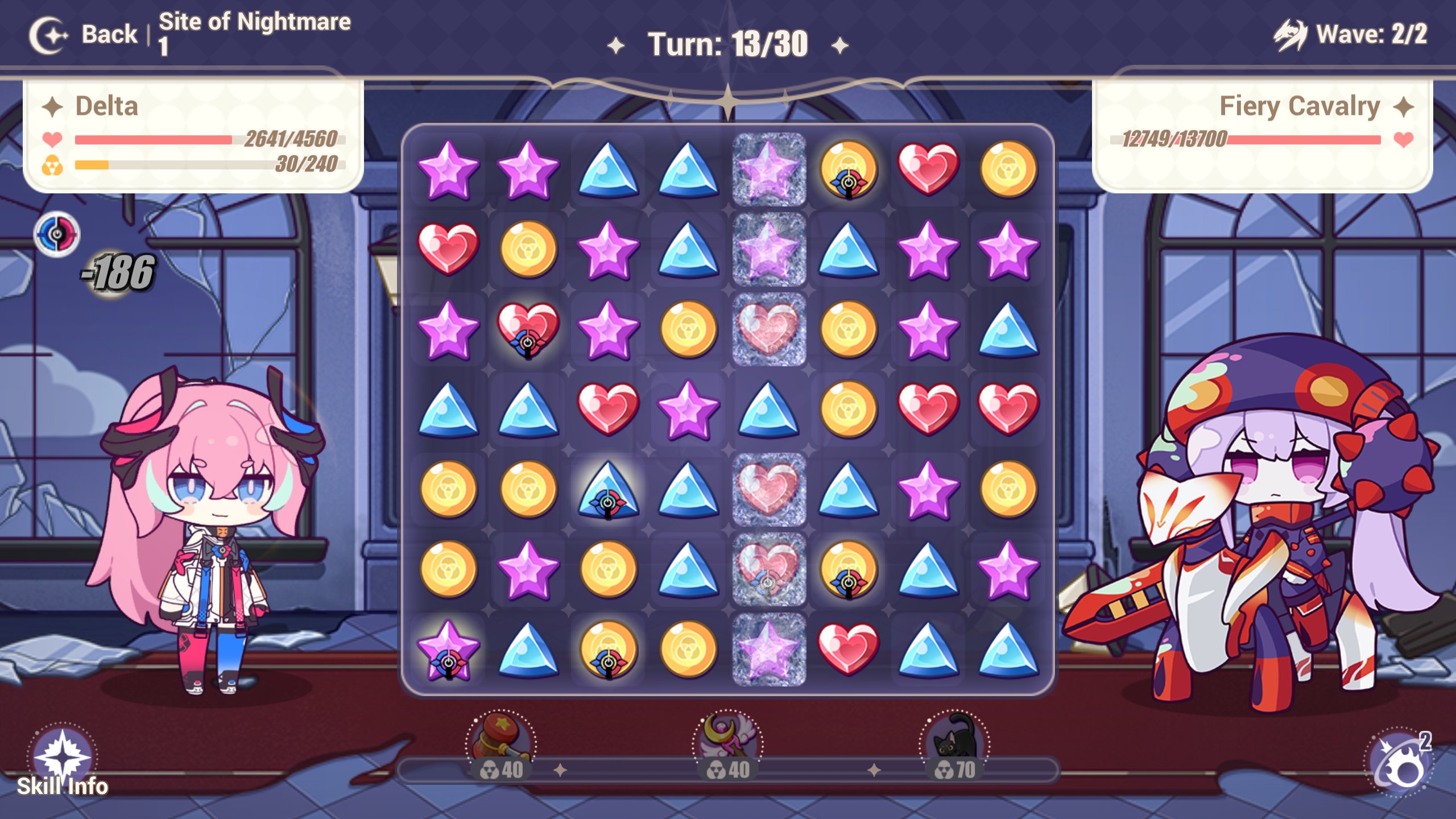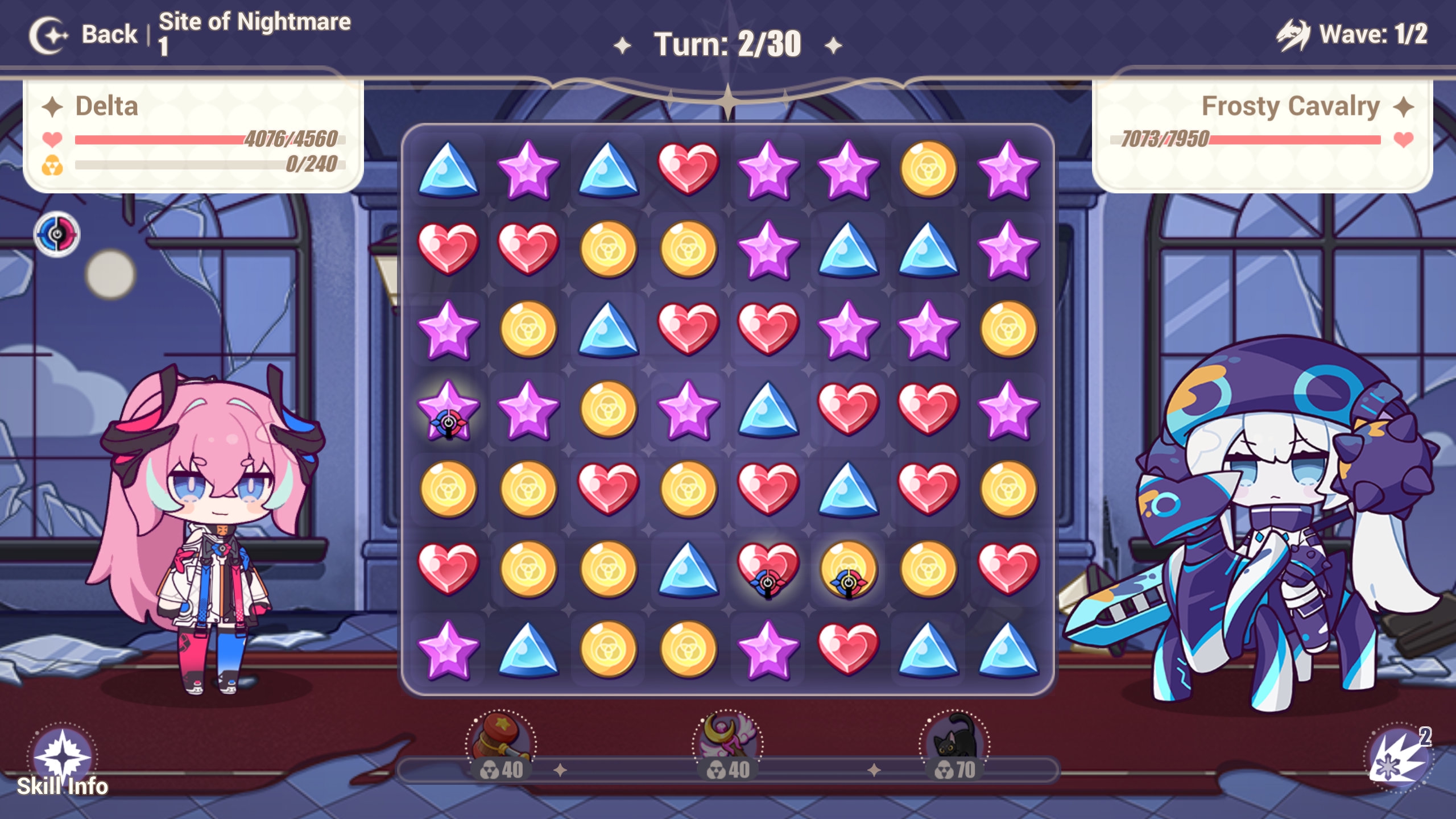 Тут подумал, а ведь нет особого резона одевать Елань в эмблему, ведь по большей части на урон конкретно Елани уже давно пофиг, не особо внушительные цифры. В какой-то степени профитнее будет знать, а Эскофье в милелит, чтоб получать неслабый буст +40% атаки для Скирк. Или даже свиток, как вариант.