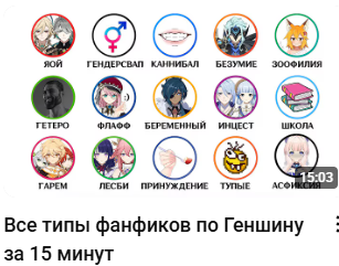 >>5234966 Всё так, контента нет почему-то. Ну разве что от тянок очень разной писанины дофига, а чтоб чёткие пацаны свои фантазии расписывали - такого действительно по пальцам пересчитать можно. (Хотя относительно недавно всё же наткнулся на бодрый фанф о попаданце в Скарамучу, мне понравилось)