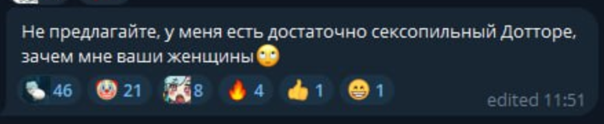 >>5236120 После этого вашего Дотторе некоторым девушкам нужна личная психотерапия от девочки-зайки. Так что Дотторе плохой, в треде неуважаемый, антибаза. Иметь его на аккаунте - позор.
