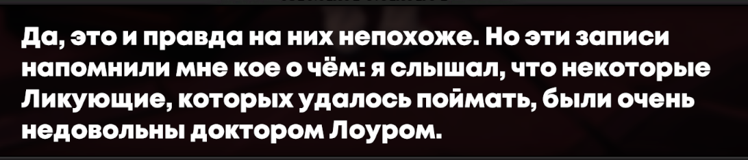 >>5235124 Особенно приятно было, когда простынь текста на экране высветили, а ты ноу-хит башню проходишь. Я только с третьего раза понял что от меня хотят про этот круг. Да и то до сих пор не уверен, что понял правильно.