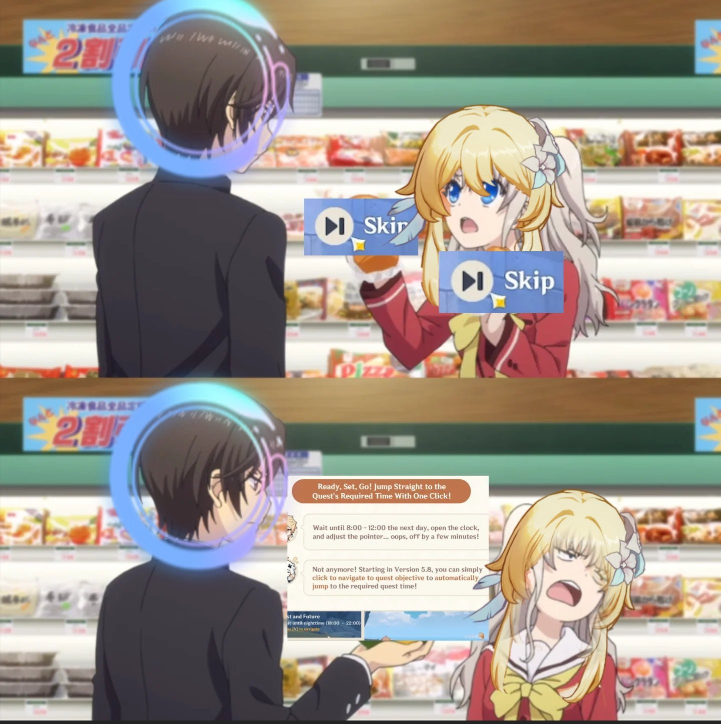 >>5239397 2020: единственная пятисекундная катсцена на весь квест который вылизывали два года 2025: куча катсцен и мультиков за один квест сделанный за 42 дня