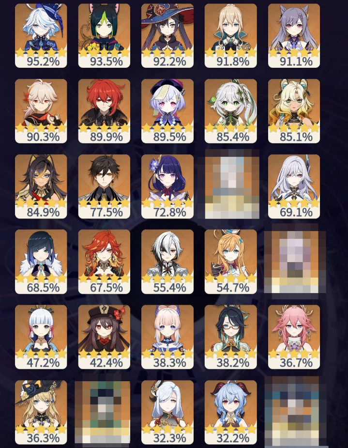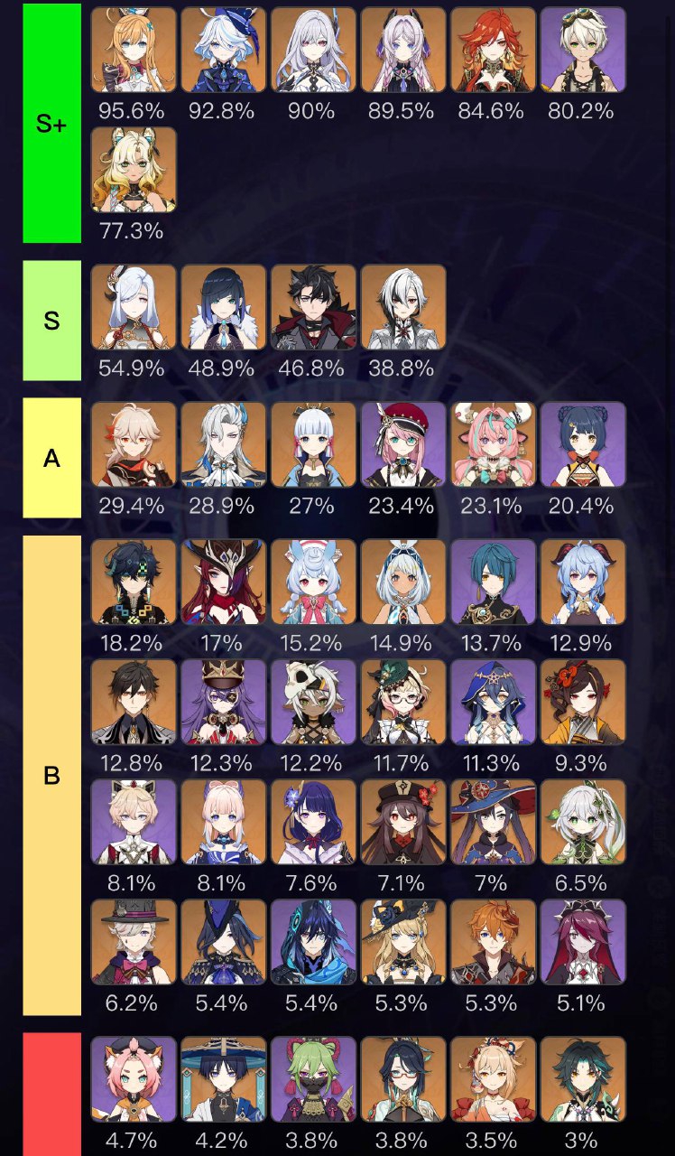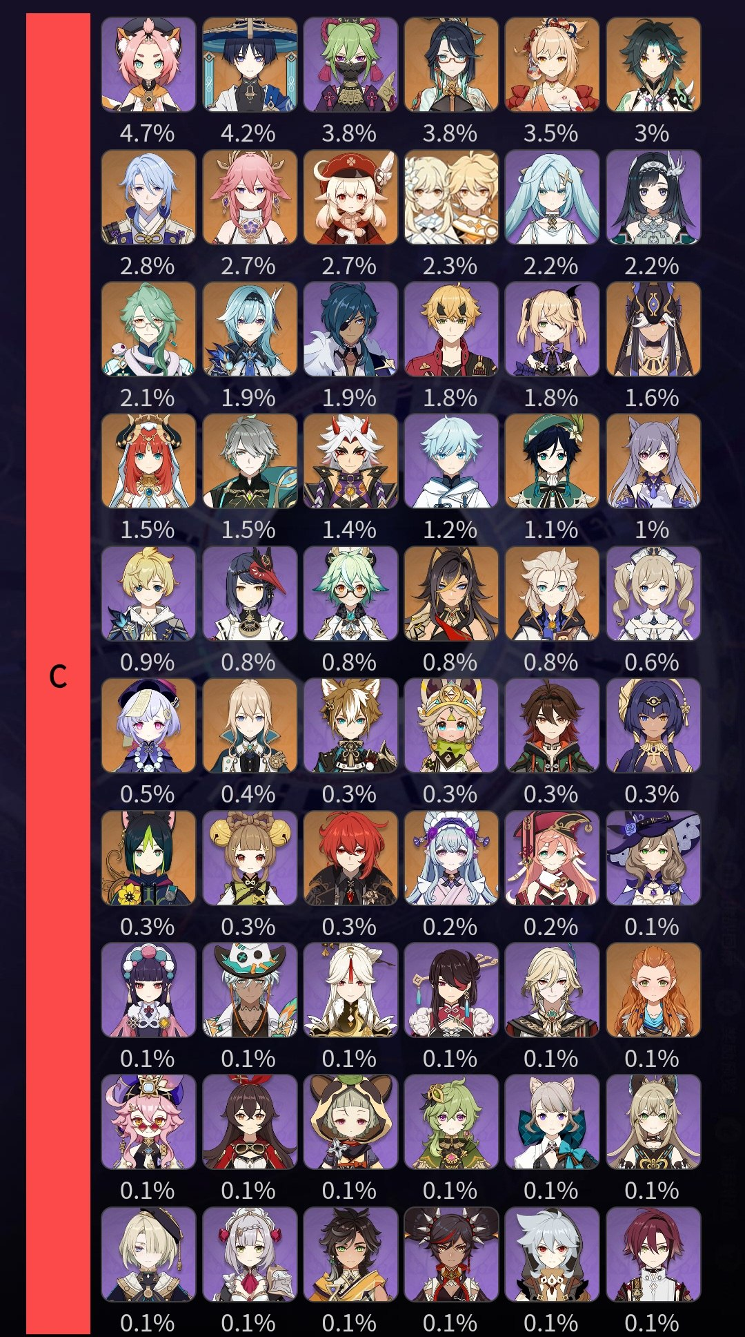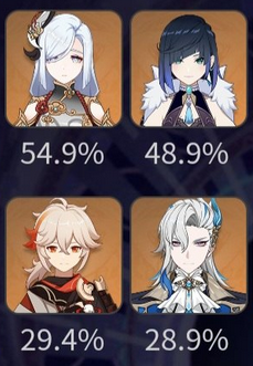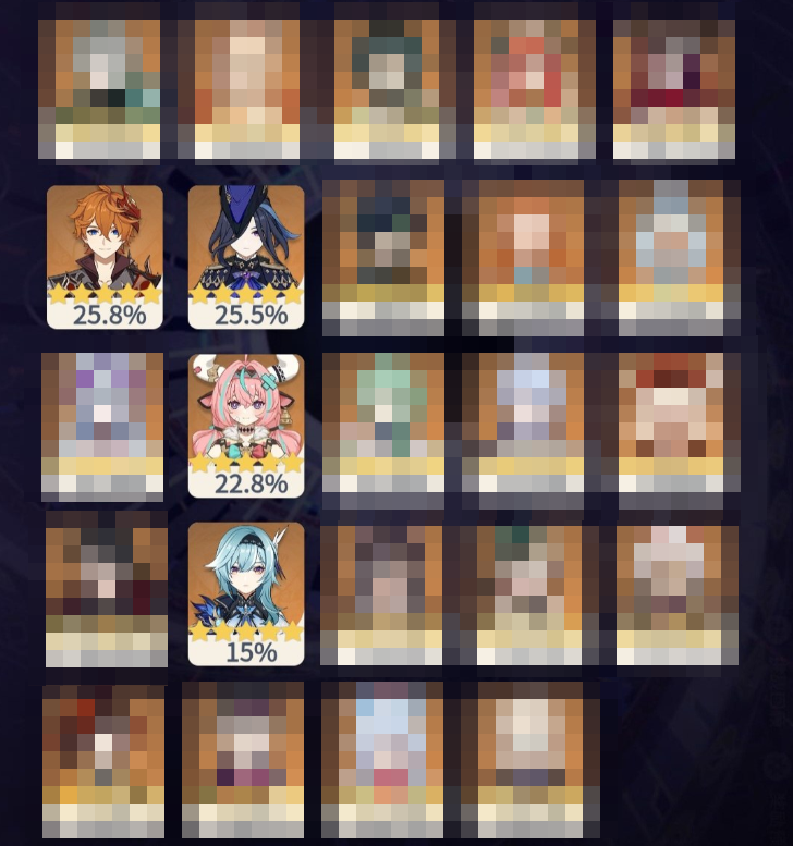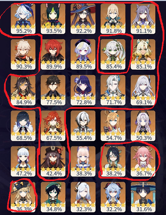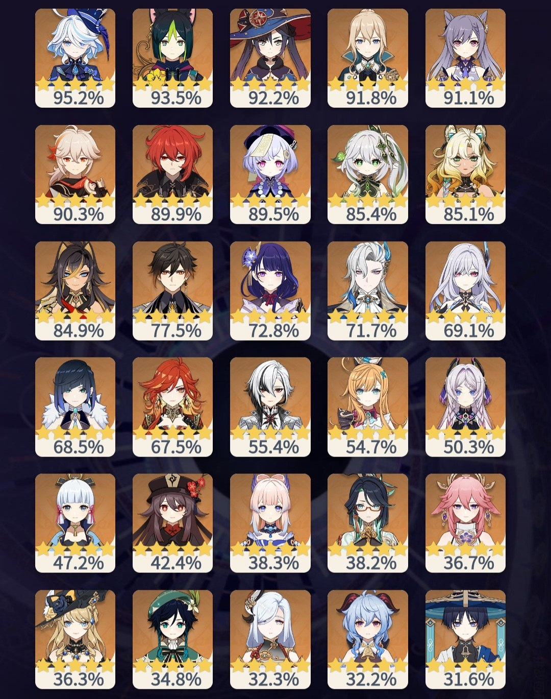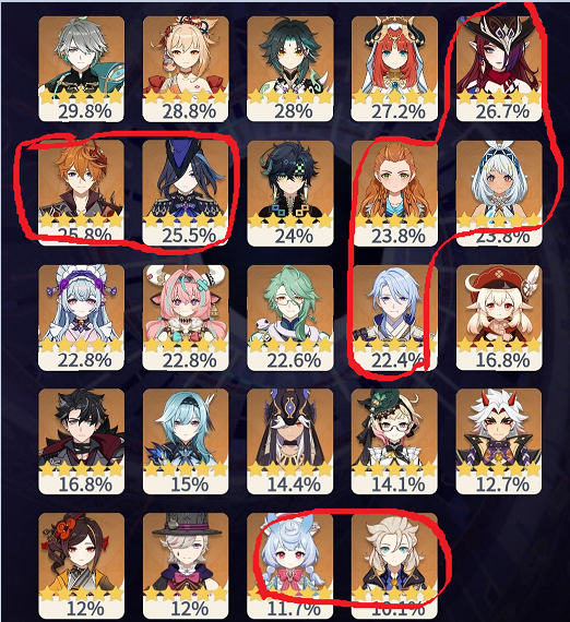>>5238231 У элой (кто это?) всего 23%, а ее раздавали бесплатно на 1 годовщину Получается все остальные иназумеры и более поздние ньюфаги А кли не было смысла крутить уже на первом реране во время архипелага