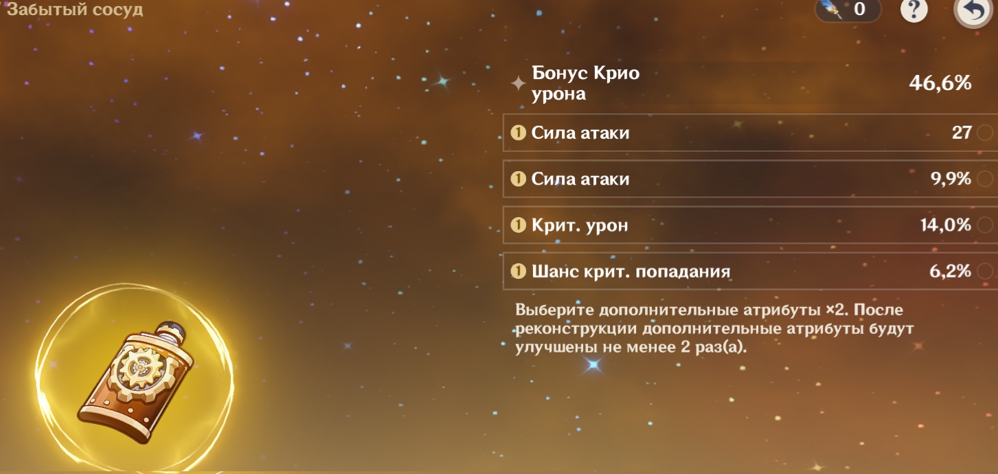 >>5238440 > Он что, с шансом крафтится? Ты получишь свой выбранный мейнстат. И даже свои проки гарантированные. Но всё равно в кал заточится. КРАФТИТЬ МОЖНО ЛИШЬ ОДИН АРТЕФАКТ ЗА ПАТЧ Бутылки на шапки/кубок тратится не одна бутылка, а несколько. > Хз только где взять 25 пятизвездочных артов заточенных на 4 очевидно надо фармить натиск, пока дают