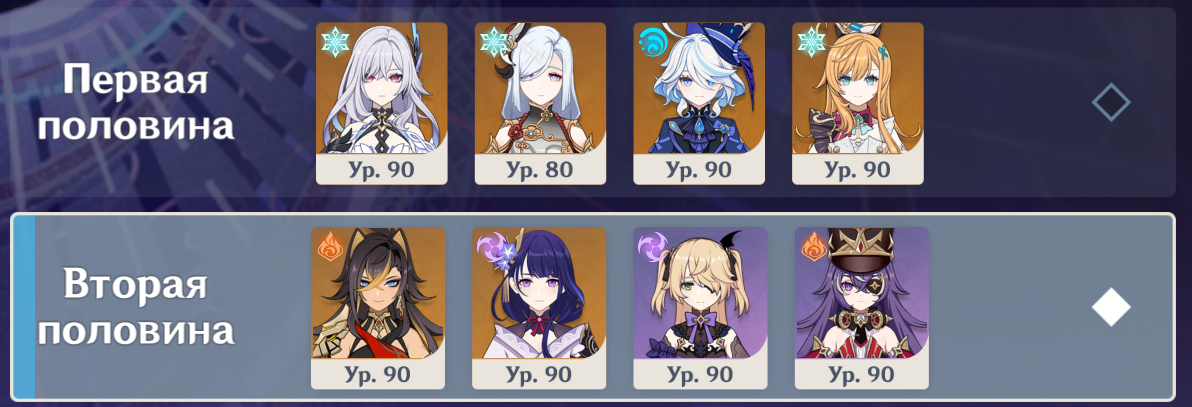 >>5240304 В первой пачке не вижу хиллера, да и крио-статуса может быть маловато в первой комнате. Если прямо нету Эскофье, то поставь хоть Шарлотту с Эпосом в руках - уже лучше стакать фанфары Фурине будет. Во второй пачке Дыня словно ни для чего. Лучше уж Диону какую-нибудь поставь, и то польза будет. Кнопки Мявуике вкачай, и лвлы до 90.