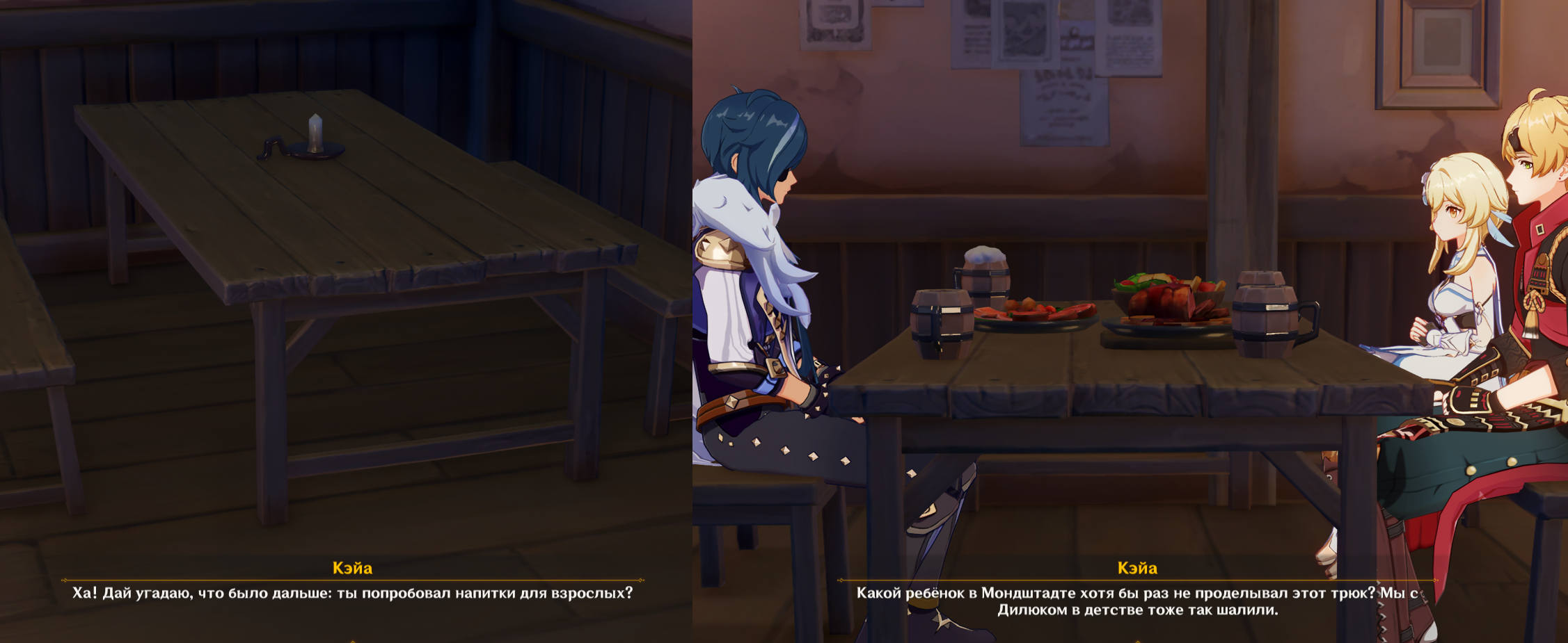 А в треде не врали, после истории с Томой в Инадзуме он в таверне Мондшадтской действительно появился у меня.... Только что он делает в столь сомнительной компании? (Я про Кейю)