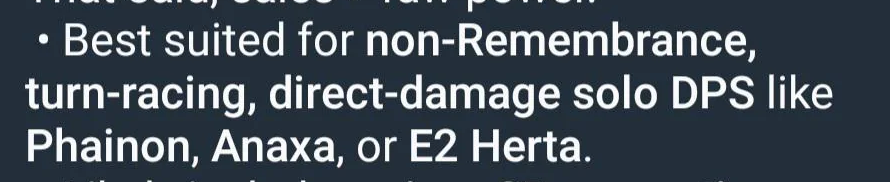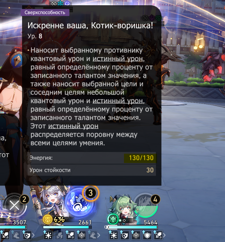 Ещё чутка из подобного нигде не обозначенного: Стоит включить в опциях шкалу действий с точными значениями, мастхевная штука для любого продвигатора, да и не только. Урон по пробитому дает 10% финального мультипликативного бонуса, хоть это и не всегда полезно, иногда энергия получаемая от атаки важнее. Резисты не убираются наложением фальшивой уязвимости типа Анаксы/Светлячка/Фаенона, враг всё равно будет получать меньше урона - то есть это не панацея убирающая эффект от подбора команды. Дефшред вместе резпен скейлятся до 100%, выше бесполезно, но чем больше тем сильнее. Резпен падает в эффективности слабее чем в знакомом всем Г, лишним не бывает.